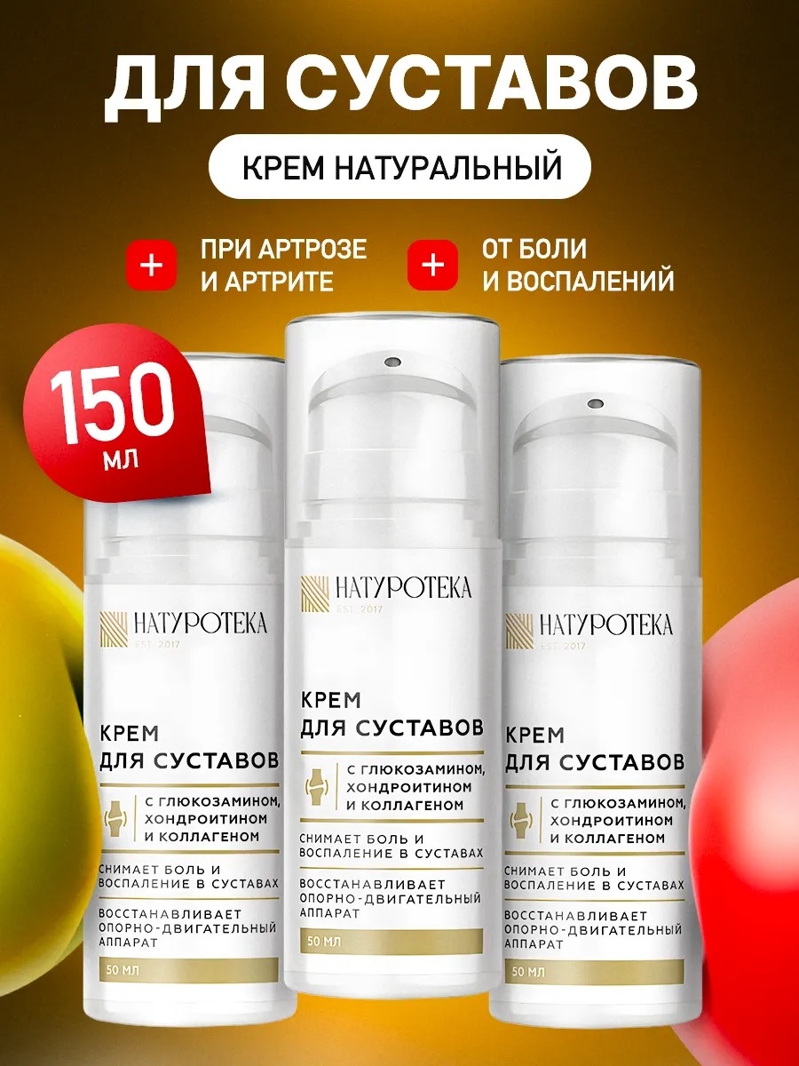 Naturoteka natural organic joint cream with glucosamine, chondroitin, and collagen of intense penetrating action based on native osteoblastic and chondrocyte cells of Altai maral antlers, enriched with the milky juice of medicinal plants from the Sashera company. For joint pain, rheumatoid arthritis, arthrosis, loss of musculoskeletal function, sprains, bruises, muscle injuries, night spasms, inflammation of the mucous bursa, neuritis, circulatory problems, limb mobility, numbness of the fingers, osteochondrosis of the spine, severe back and sacral pain, cervical osteochondrosis, bone fractures, scars and surgical sutures, spondylitis, gout, phlebitis and thrombophlebitis of the superficial veins, and varicose veins. It has anti-inflammatory, analgesic, wound-healing, regenerating, restorative, and anti-infective effects. Suitable for adolescents and adults, this pain-relieving ointment can be used as a body cream or hand and foot gel. Chondroprotectors accelerate recovery from injuries and damage. Glucosamine and chondroitin promote collagen synthesis and substances that promote cartilage elasticity. An excellent alternative to Sustarad, Extrusion, and Sustal Cartemia MSM creams. Collagen capsules or collagen powder for skin and hair. Naturoteka ointment is used for body care and to help with knees, elbows, hands, ankles, lumbar, cervical spine, and back pain. This is a cooling ointment, but can feel warming. It relaxes muscles and nerve tension. Recommended use at least twice a day. The course of treatment is 10 days. Omega-3 and D3 can be added to the daily diet. Show your care for your loved ones and give our ointment to your grandparents. It is also a wonderful gift for March 8th for mom and dad, or for February 23rd if your child is involved in sports. Maclura Thai ointment MSM. We have promotions and sales where you can buy our products as gifts with a discount of 150, 50, or 100.