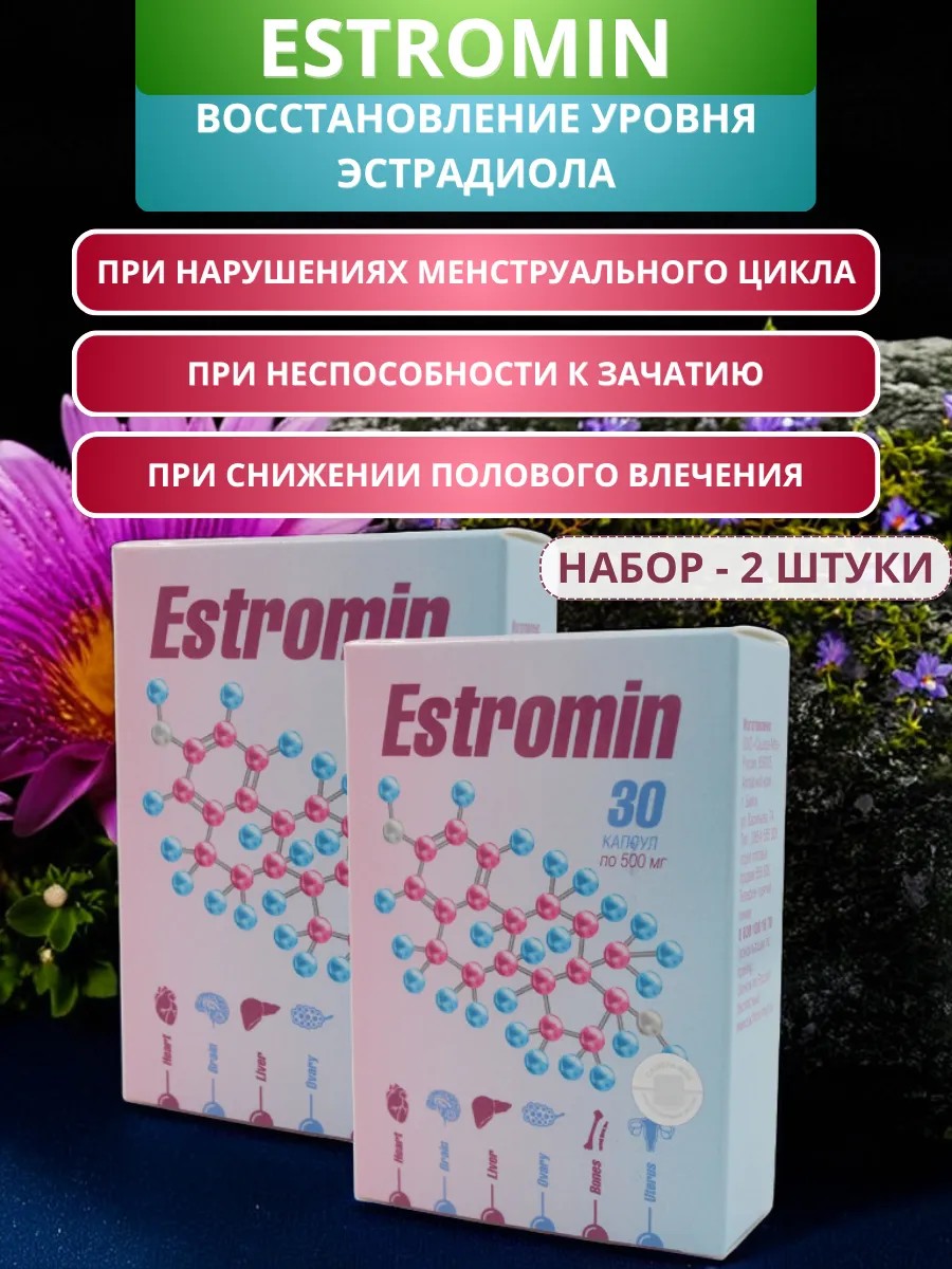 Estromin – восстановление уровня эстрадиола, 30 капсул - набор 2 шт.. Для баланса половых гормонов у женщин, менструального цикла, при ПМС