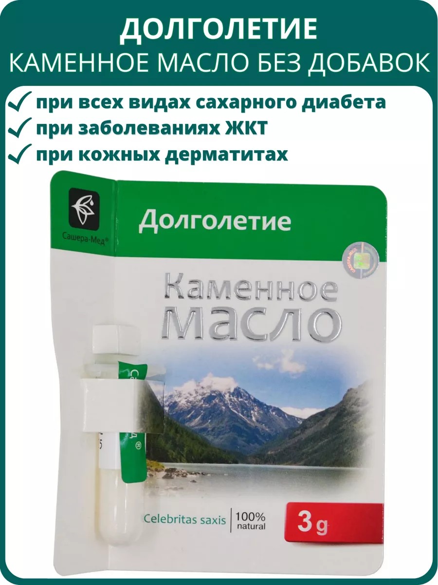 Каменное масло Долголетие (без добавок), 3 г. Для иммунитета, желудка, щитовидной железы, при диабете, гастрите, дерматите.