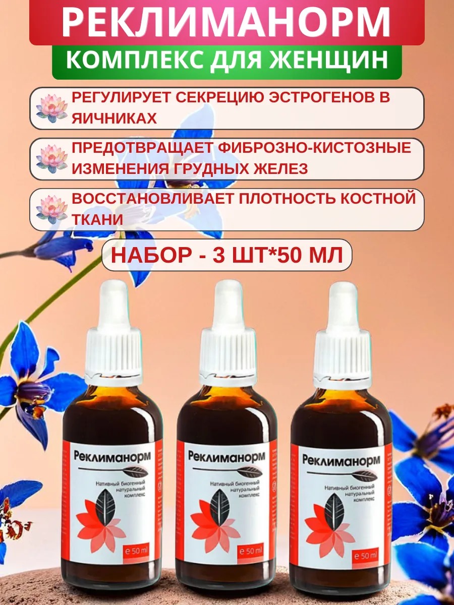 Реклиманорм – комплекс для женщин, 50 мл - набор 3 шт. В период менопаузы, постменопаузы, при раннем климаксе.