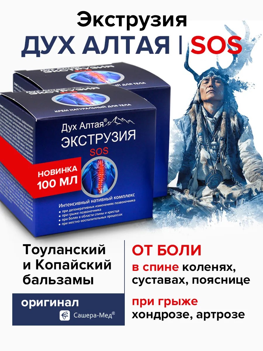 Экструзия sos дух алтая – это новый натуральный крем от сашера мед для здоровья всей семьи. Природный комплекс быстро снимает боль и способствует восстановлению подвижности суставов и позвоночника. Алтайское средство оказывает действие именно там, где это больше всего нужно: при остеохондрозе позвоночника, когда диски теряют эластичность; при грыже, вызывающей мучительные боли; при острых болезненных ощущениях в области спины и крестца.