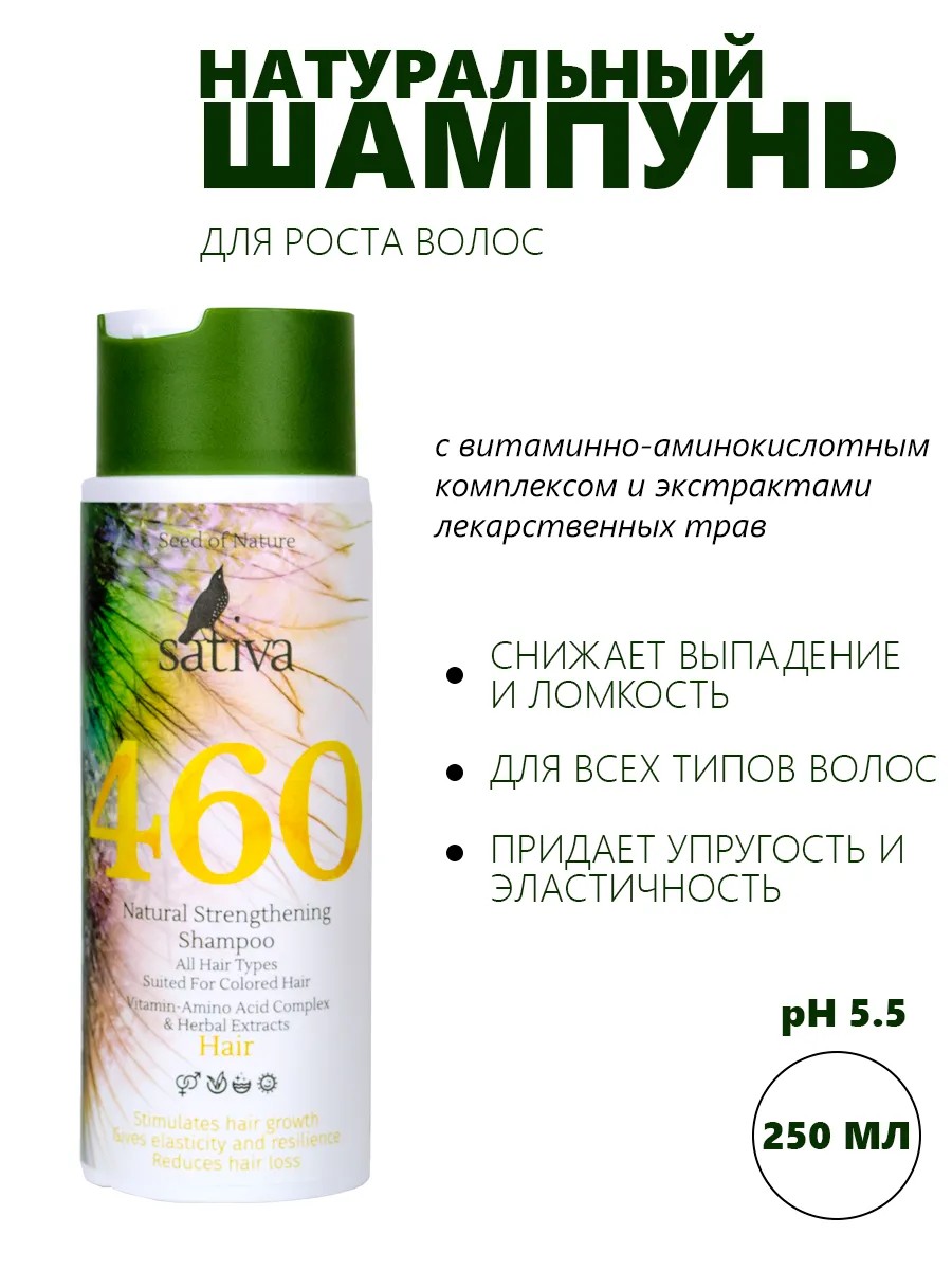 Укрепляющий шампунь Sativa №460 для всех типов волос. Шампунь женский и мужской для ежедневного применения. Подходит для ухода за кожей головы с псориазом, и высокой чувствительностью. Уход за кожей головы и волосами.