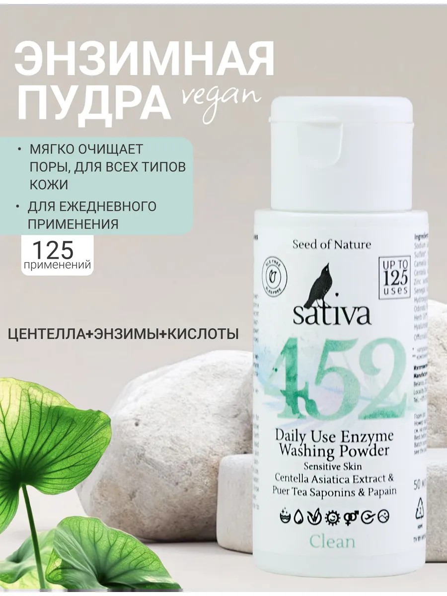 Энзимная пудра для умывания Sativa №452 ежедневная.