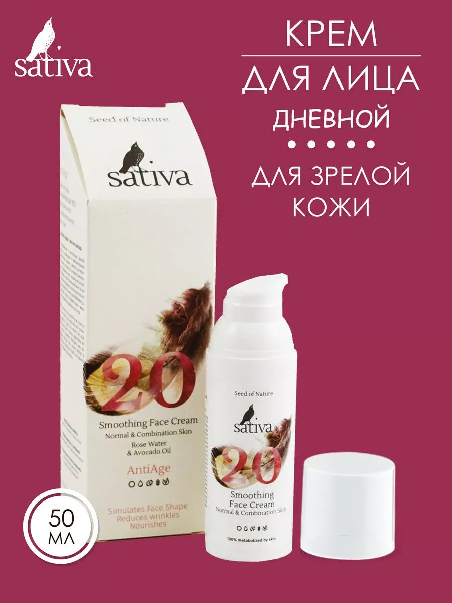 Sativa Day Cream No. 20 with Rose Water and Avocado Oil from a Belarusian manufacturer.