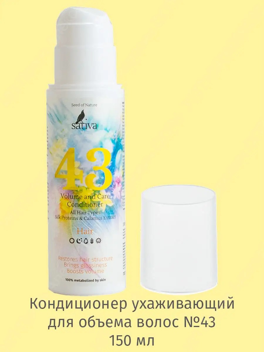 Бальзам-кондиционер для волос Sativa №43 женский и мужской от белорусского производителя. Средство для объема с протеинами шелка и экстрактом аира. Восстанавливающий уход для волос. Кондиционер подходит также для тонких ослабленных или жирных волос.