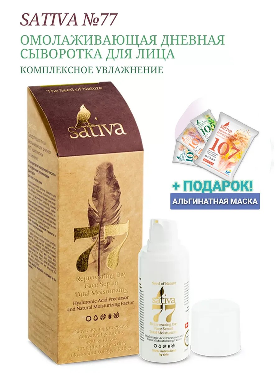 SATIVA Сыворотка для лица увлажняющая омолаживающая дневная №77