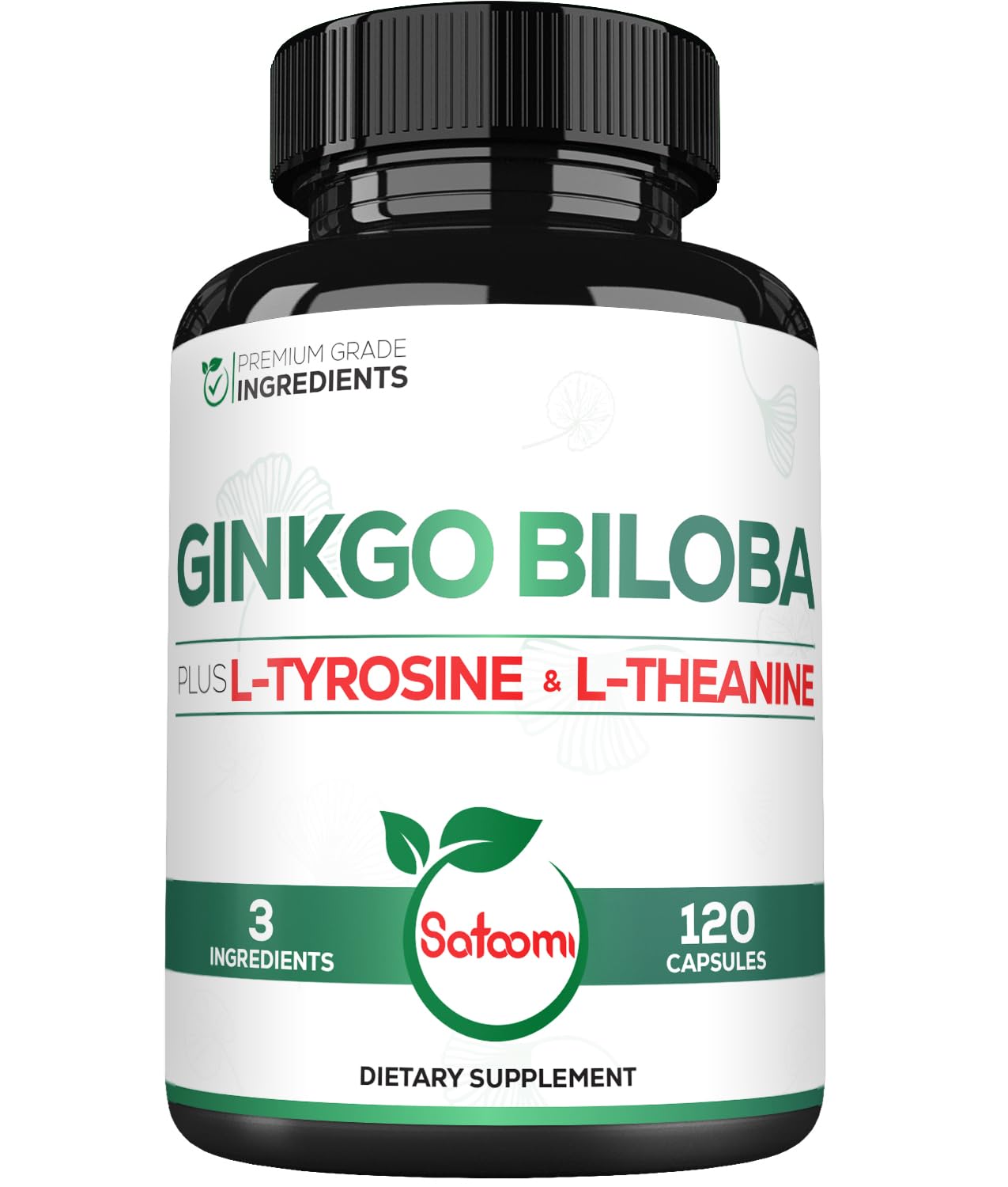 Satoomi 1000mg Ginkgo Biloba Supplements with L-Tyrosine, L-Theanine - 120 Capsules for 2-Month Supply - Support Focus, Mermory Function, Brain Health & Vision Quality 120 Count (Pack of 1)
