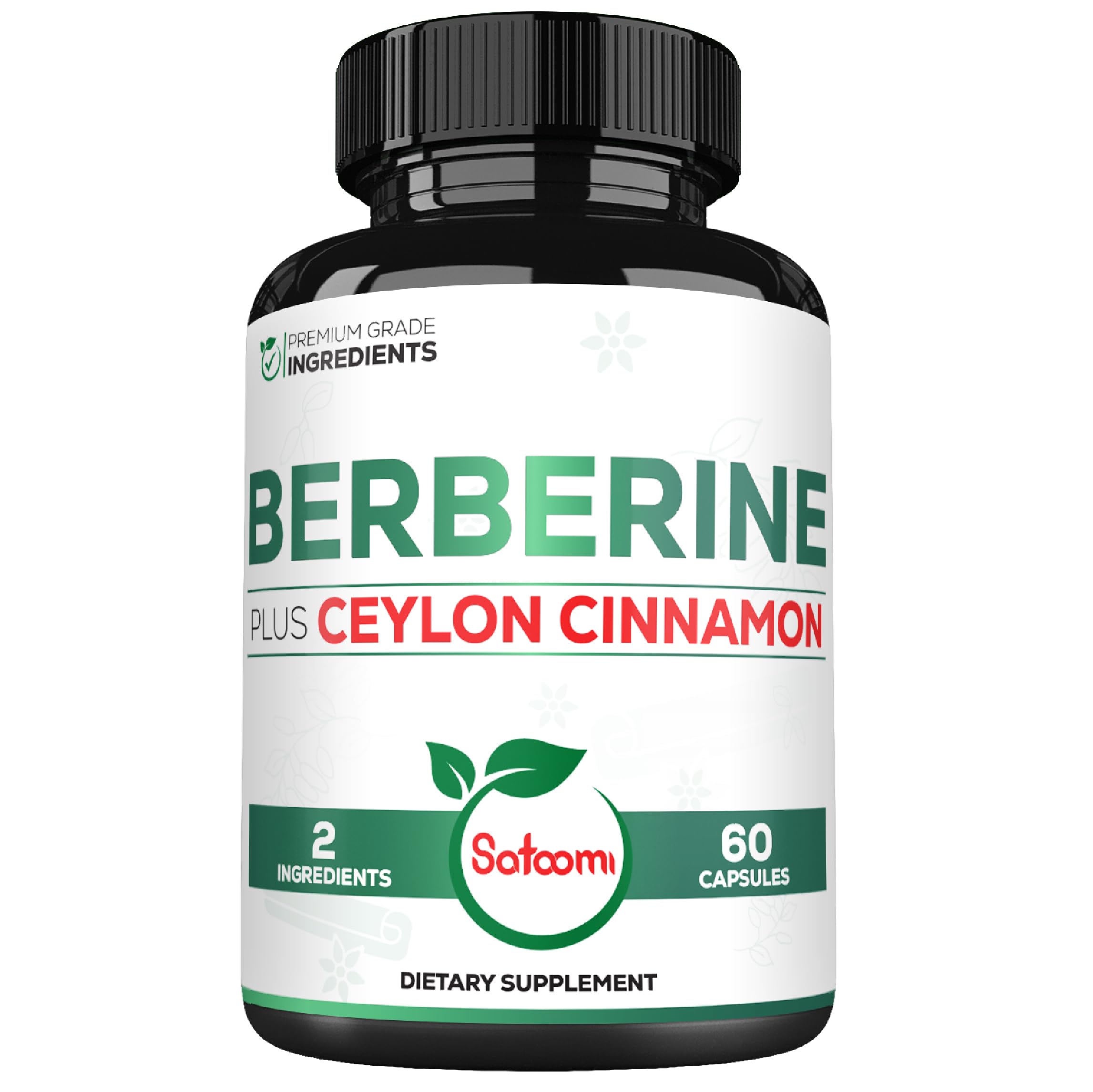 Satoomi 1500mg Berberine with Ceylon Cinnamon Supplement - Extra Strength for Immune System, Digestive Health, Body Management & Energy Production - 60 Capsules - Gluten-Free, Non-GMO 60 Count (Pack of 1)