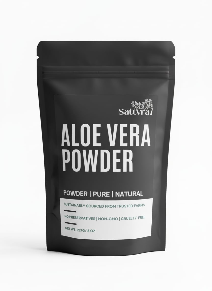 Sattvra Aloe Vera Powder is a versatile herbal powder made from carefully dried and finely milled aloe vera leaves. With its light texture and natural color, it's a favorite among those who enjoy crafting DIY beauty and wellness recipes. Perfect for use in face packs, hair masks, scrubs, or homemade soaps, this powder makes a great addition to your natural care collection. Packed in a resealable pouch to maintain freshness, Sattvra Aloe Vera Powder is easy to store and ready for your next project.