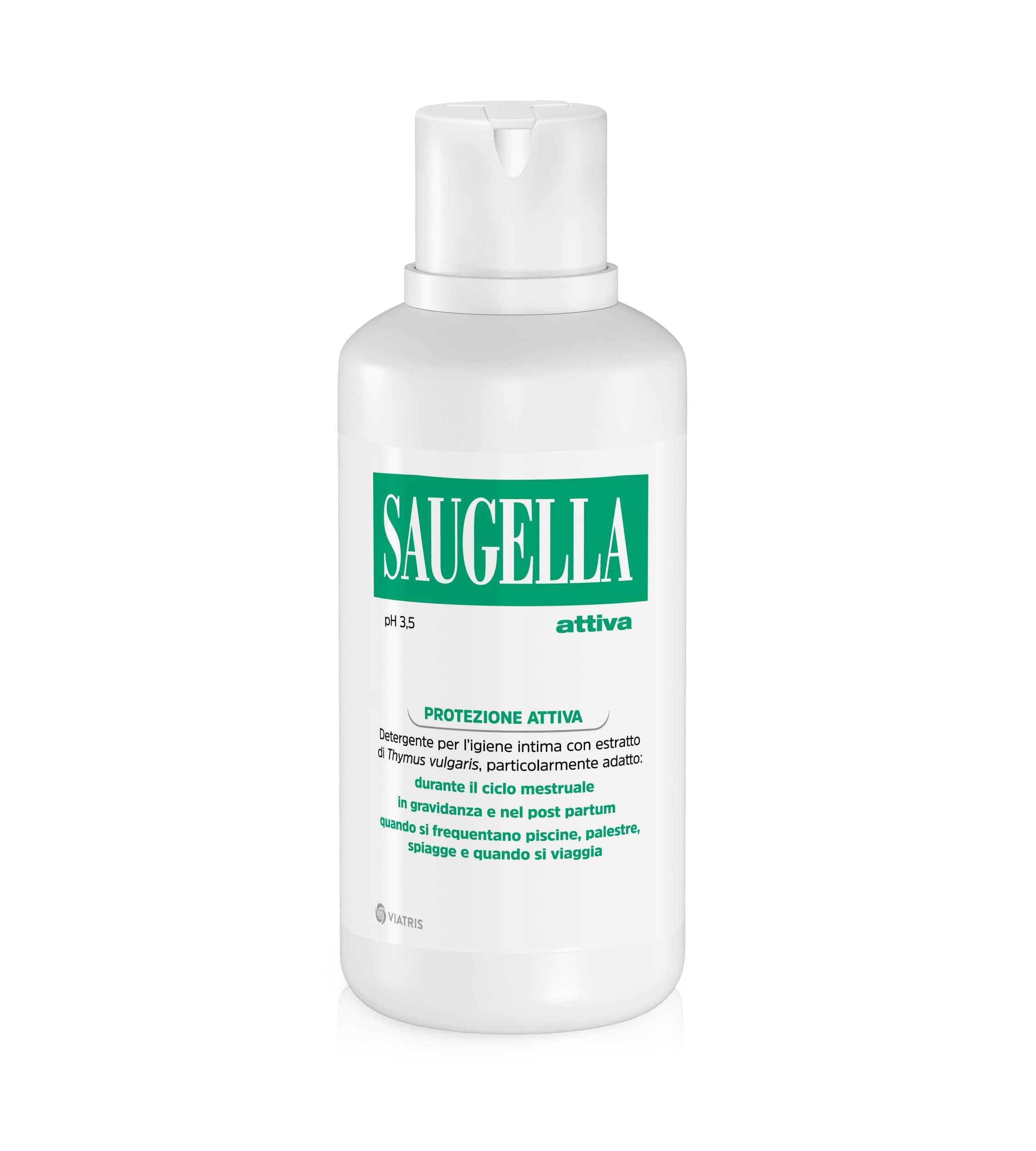Intimate hygiene cleanser with an acidic pH (3.5) containing Thymus vulgaris (thyme), a natural antibacterial that helps protect against infections during times of increased risk. Why it works: Thymus vulgaris (thyme) extract does not affect lactobacilli, which are essential at a pH of 3.5 to maintain the physiological conditions of the vulvar area. WHEN IT'S USEFUL: During your menstrual cycle Pregnancy and postpartum For swimming, the gym, the beach, and while traveling. Saugella Active can also be used during topical vaginal treatments. Good to know: It is supported by numerous clinical trials that attest to its effectiveness and safety. SAU-2019-0219_IT INGREDIENTS Aqua, Tea Lauryl Sulfate, Propylene Glycol, Ammonium Lauryl Sulfate, Thymus Vulgaris Extract, PEG-2-Stearate, Lac, Hydroxyethylcellulose, Hydrogenated Coconut Oil, Lactic Acid, Glycol Stearate, Salvia Officinalis Extract, Sodium Dehydroaceate, Acid, Ketoglutaric Acid, Cholesterol. .It is supported by numerous clinical studies that attest to its effectiveness and safety. Saugella Active can also be used during topical vaginal treatments. It provides protection when frequenting environments such as gyms and swimming pools, and while traveling. It is useful during menstruation, pregnancy, and postpartum. It is a specific intimate hygiene cleanser with an acidic pH (3.5) for times of increased risk.Saugella attiva 500 mlDESCRIPTION DU PRODUIT DESCRIPTION DU PRODUIT Nettoyant pour hygiène intime au pH acide (3,5) avec thymus vulgaris (thym), un antibactérien naturel qui aide à protéger les moments les plus à risque. Pourquoi ça marche : L'extrait de thymus vulgaris (thym) n'agit pas sur les lactobacilles, indispensable avec pH 3,5 pour maintenir les conditions physiologiques de la zone vulvaire. QUAND EST UTILE : Pendant le cycle menstruel Grossesse et post-partum Pour aller à la piscine, à la salle de sport, à la plage et lors de vos déplacements. Saugella Active peut également être utilisé pendant les traitements vaginaux topiques. Il est bon de savoir que : Il est soutenu par de nombreux essais cliniques qui attestent de son action et de sa sécurité d'utilisation. SAU-2019-0219_IT INGRÉDIENTS Aqua, Tea Lauryl Sulfate, Propylene Glycol, Ammonium Lauryl Sulfate, Thymus Vulgaris Extract, PEG-2-Stearate, Lac, Hydroxyéthylcellulose, Hydrogenated Coconut Oil, Lactic Acid, Glycol Stearate, Salvia Officinalis Extract, Sodium Dehydroacéate, Acid, Ketoglutaric Acid, Cholesterol. .Il est soutenu par de nombreuses études cliniques qui en attestent son action et sa sécurité d'utilisation. Saugella Active peut également être utilisé en cours de traitements vaginaux topiques. Protège lorsque vous fréquentez des environnements tels que les gymnases et les piscines et pendant les voyages. Utile pendant le cycle menstruel, la grossesse et le post-partum. Nettoyant pour l'hygiène intime spécifique au pH acide (3,5) pour les moments les plus à risque.