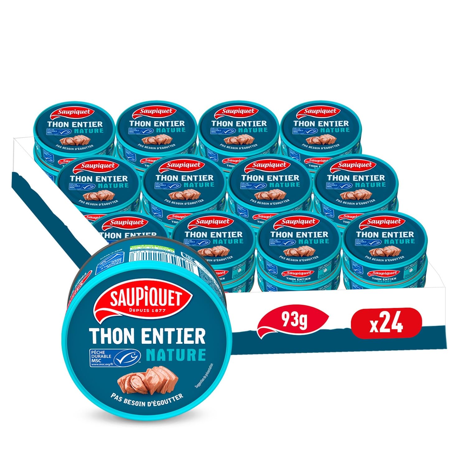 SAUPIQUET - Thon au Naturel - Thon Entier Nature - Moelleux Savoureux - Issu d'une Pêche Durable Garantie MSC - 24 Conserves (93 g) Nature 93G x 24
