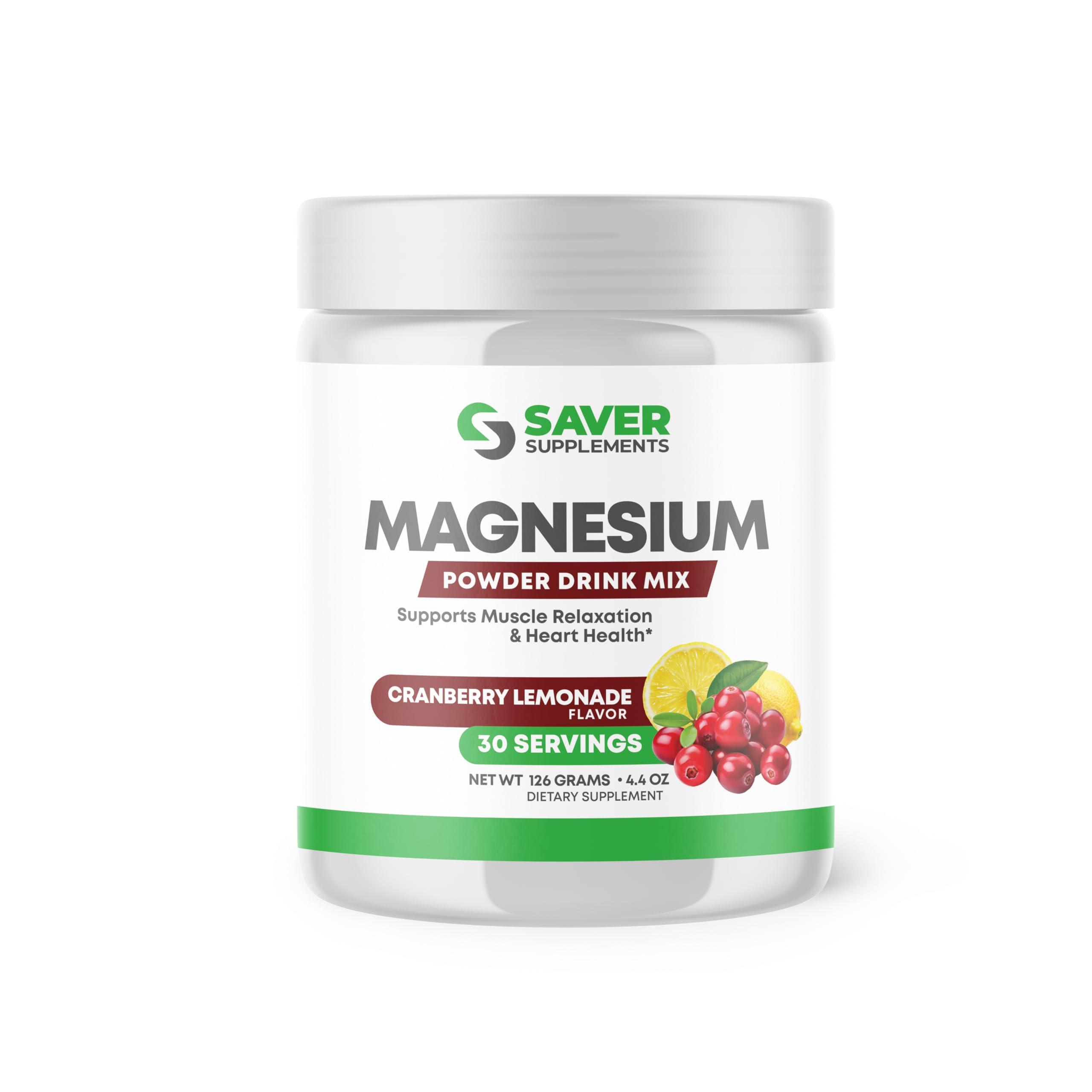 Saver Supplements Magnesium Powder - Anti-Stress Drink Mix for Calm & Regularity - Magnesium Citrate Supplement - Relaxation Muscle & Heart Support - Cranberry Lemonade Flavor - 30 Servings