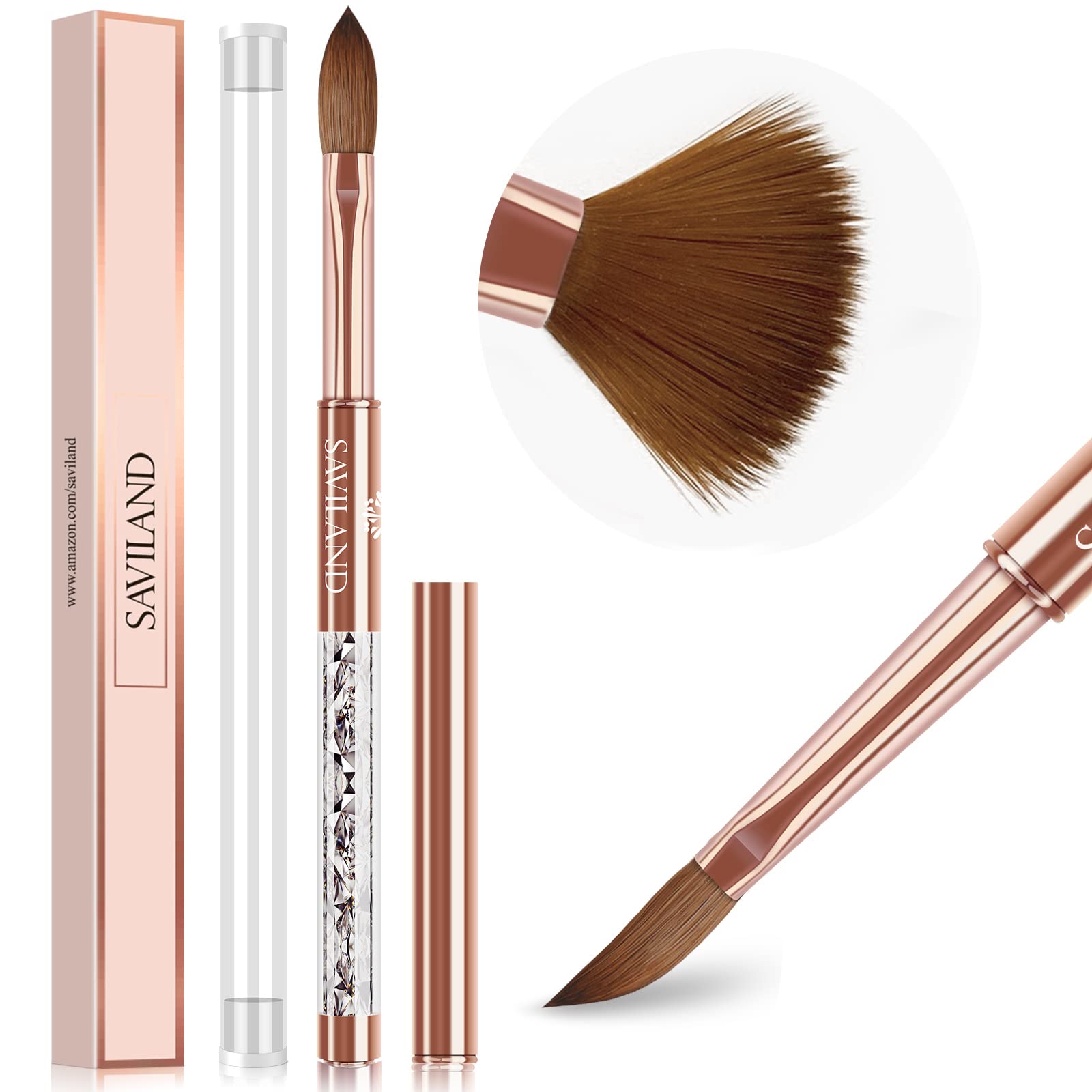 BEST SERVICE?All of our products are under strict quality control and will be double-checked before delivering. If you experience any problems using this acrylic nail brush set, please contact our team directly. We will solve the problem for you the first time and provide a good solution. WARM TIPS?Always rinse a new brush with brush liquid solution before first using. Always wash the brush after each use. Do not rub back and forth vigorously when washing. SWEET GIFT FOR WOMAN AND GIRLS?The nail art acrylic brush set is durable for daily use, great for professional salons and home DIY nail art, perfect for nails specialist and nail learner. Along with its light weight, it is also a perfect gift for Valentine's Day. HIGH QUALITY & DURABLE?Saviland acrylic nail brushes are made of premium kolinsky hair with proper flexibility, which can offer you a smooth application. The metal stamping design can firmly lock the pen body and pen tip, which makes it well strong and durable enough for a long-term use. ACRYLIC NAIL BRUSH SIZE 12?This is 1pcs nail art brush for nails which can do nail extension. This nail acrylic brush is made of bronze gold and broken diamond handle. It is a very elegant and beautiful brush. When you are using this nail brush, you can see the broken diamond moving along.