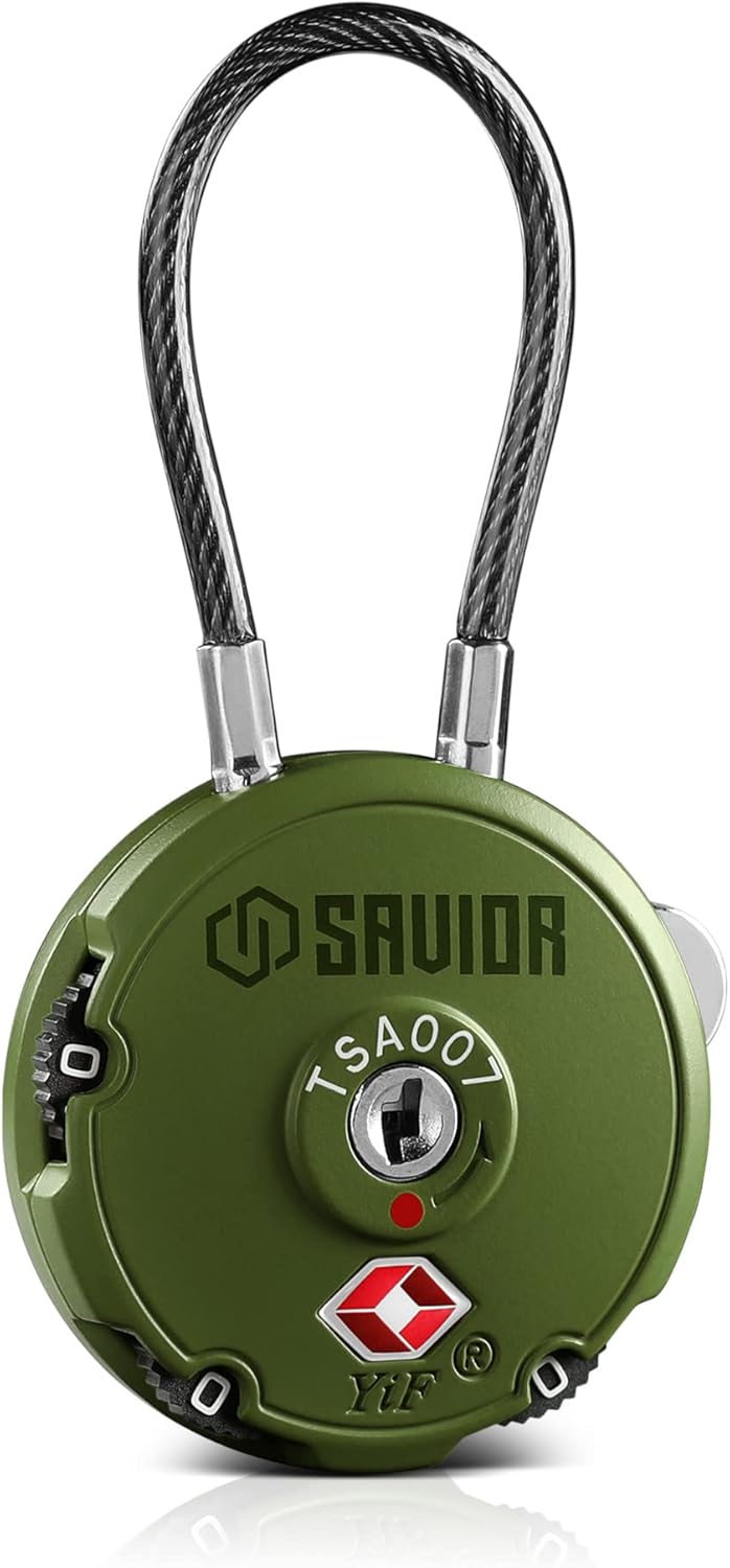 Savior Equipment Quality TSA Approved 3 Digit Combination Cable Travel Luggage Locks for Rifle Bag Firearm Gun Case Accessories Ammo Boxes Outdoor Storage - Olive Drab Green