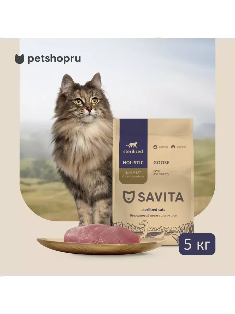 SAVITA Беззерновой корм для стерил. кошек с мясом гуся, 5кг