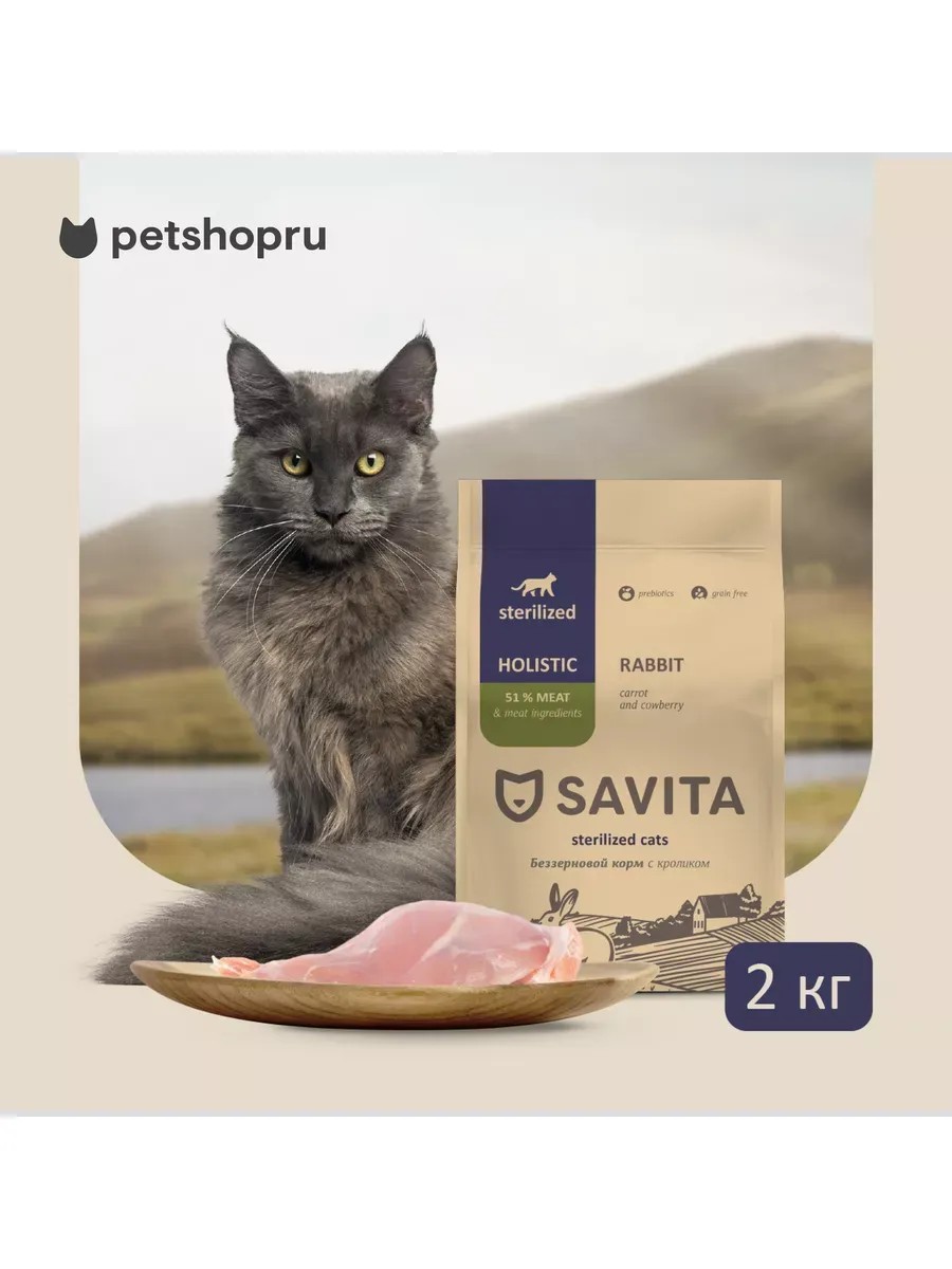 SAVITA Беззерновой сухой корм для стерилизованных кошек с кроликом, GRAIN FREE STERILISED, Rabbit