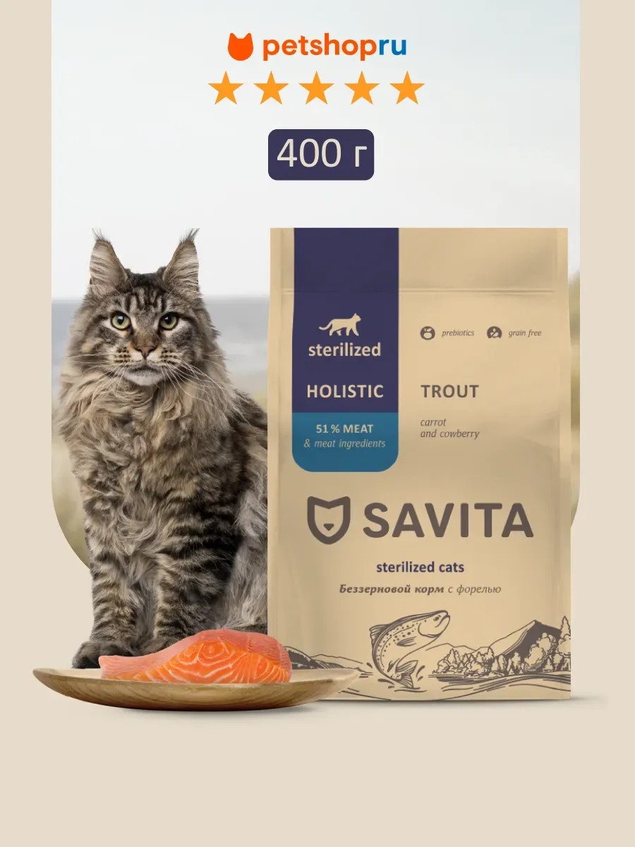 SAVITA Беззерновой корм для стерилизованных кошек с форелью, 0.4кг
