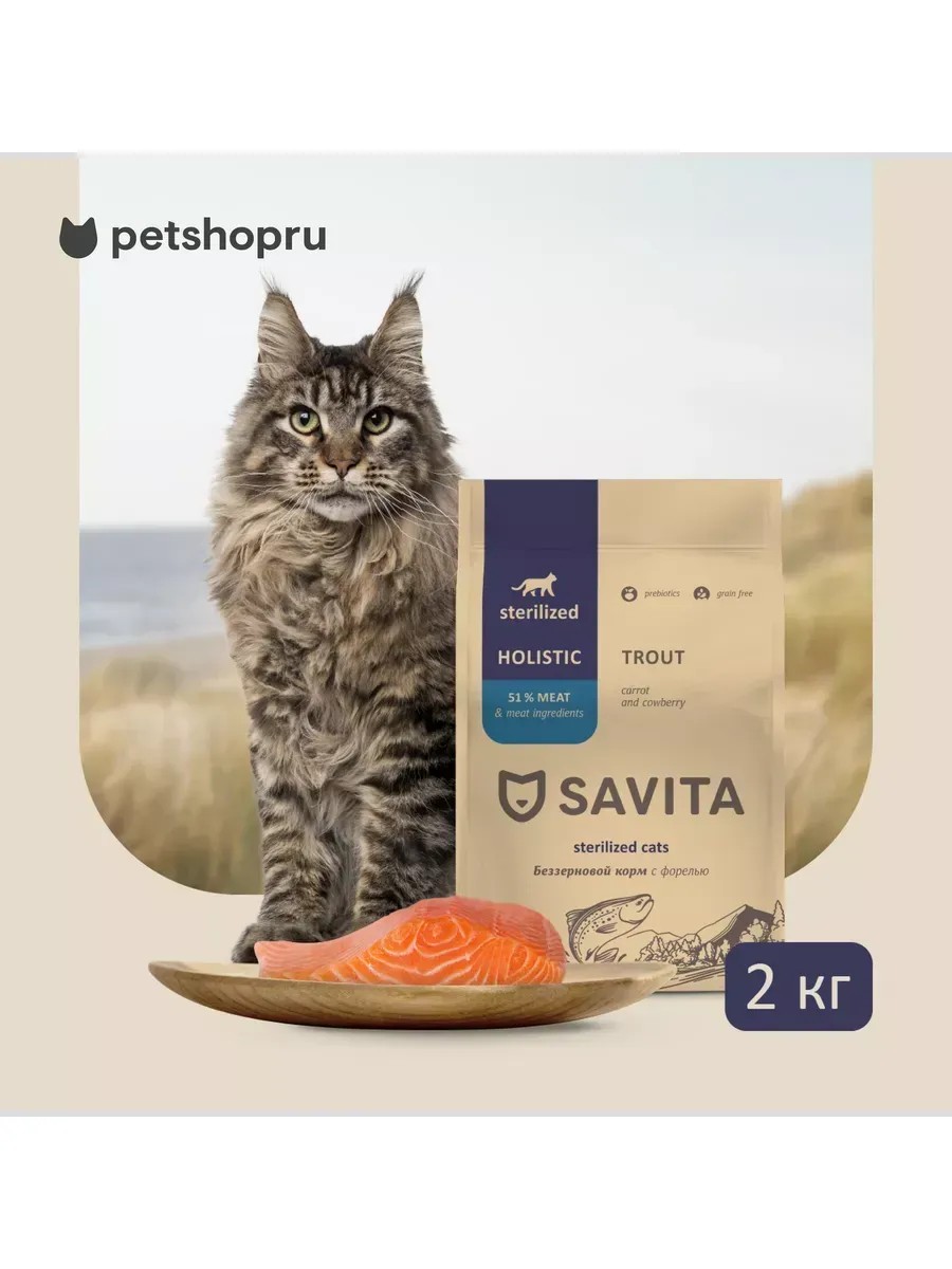 Полнорационные и сбалансированные корма Savita класса холистик содержат высокий процент мясных ингредиентов, необходимых витаминов и минералов, без добавления зерновых культур в составе. Надолго обеспечивают кошку необходимой энергией на весь день. Каждый ингредиент тщательно подобран в соответствии с природными потребностями питомца и является важным компонентом в рецептуре корма, минимизируя риск возникновения аллергических реакций.