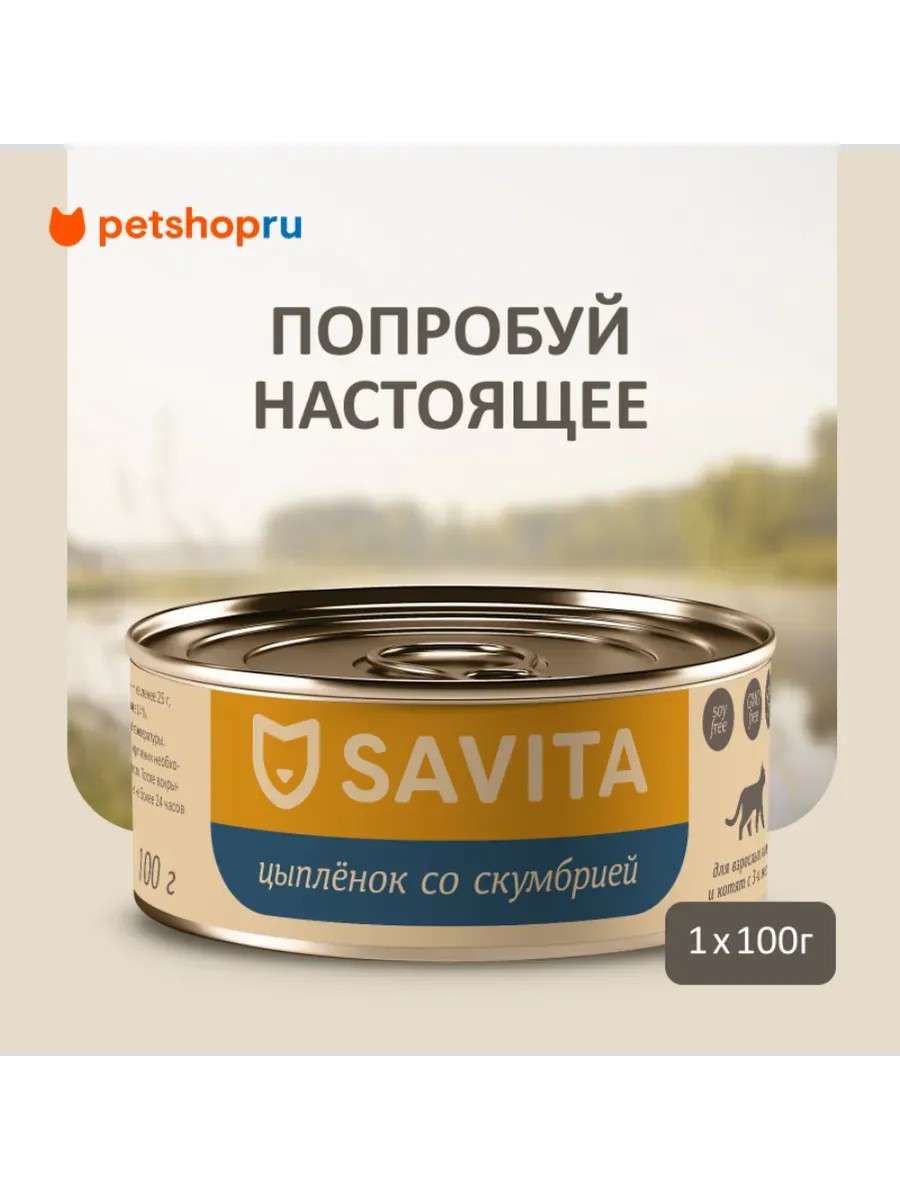 SAVITA Консервы для кошек и котят "Цыплёнок со скумбрией", 100г