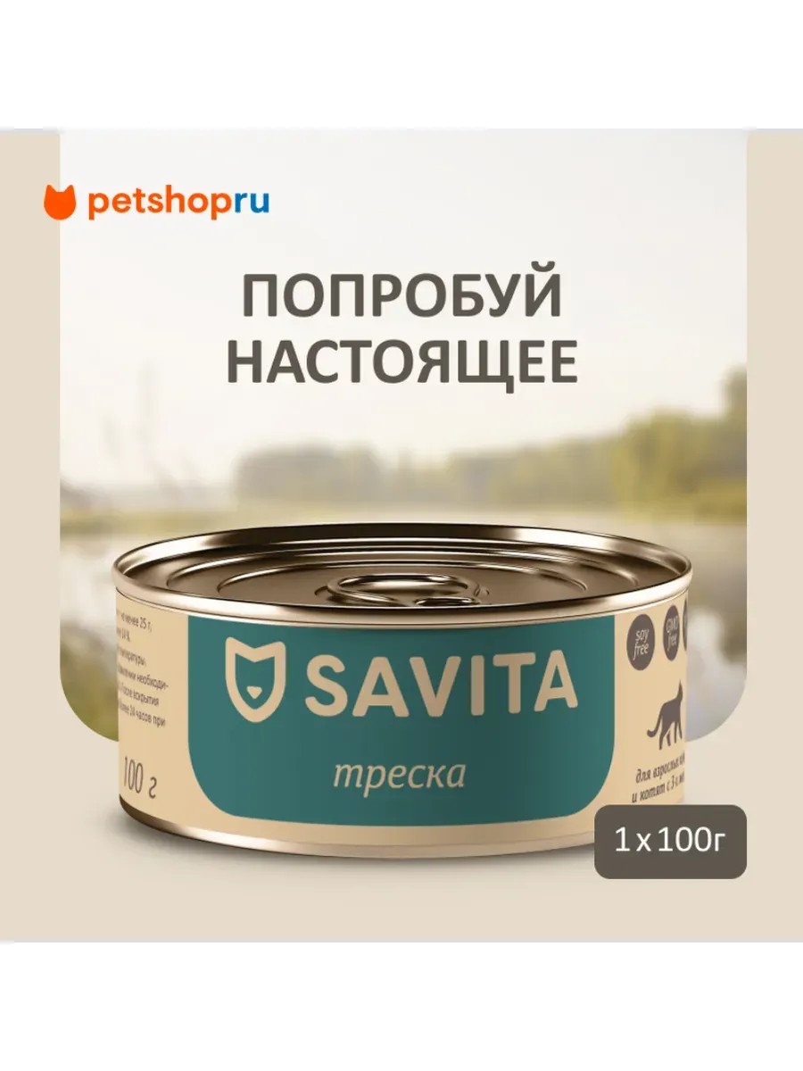 SAVITA Консервы для кошек и котят "Треска", 100 г