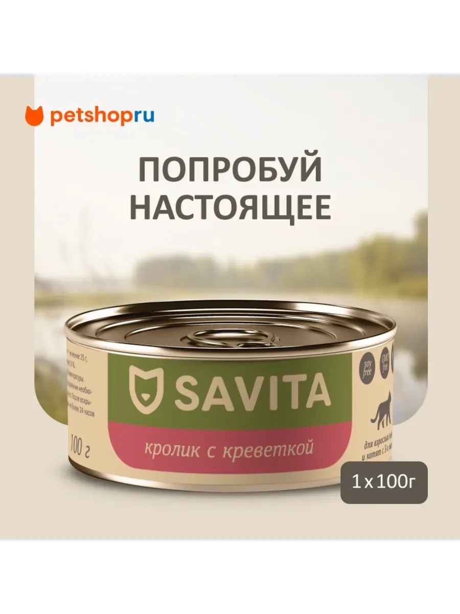SAVITA Консервы для кошек и котят "Кролик с креветкой", 100г
