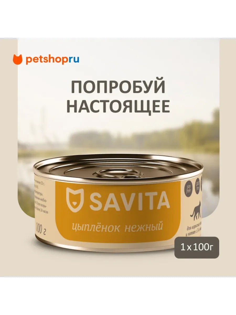 SAVITA Консервы для кошек и котят "Цыпленок нежный", 100 г