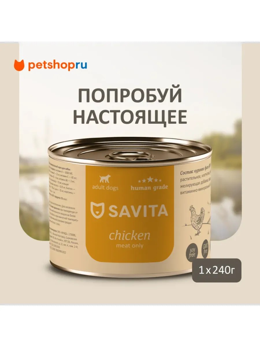 Беззерновые консервы класса holistic Savita - это сбалансированные натуральные рационы для собак с высоким содержанием мяса, обогащенные витаминно-минеральным комплексом.