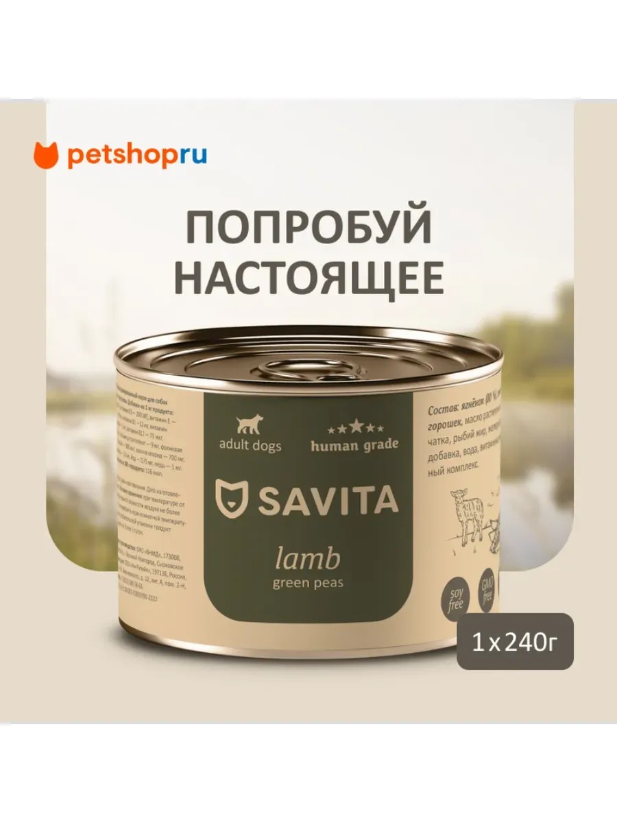 SAVITA Консервы для собак «Ягнёнок с зеленым горошком», 240г