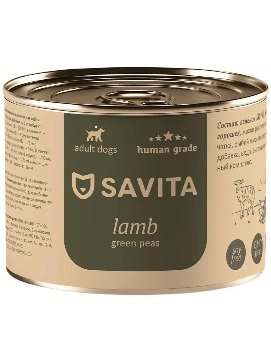 SAVITA Консервы для собак, ягненок, зелёный горошек, 24 шт x 240 г