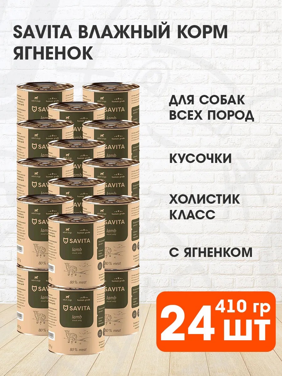 SAVITA Корм для собак влажный беззерновой ягненок 410 г 24 шт