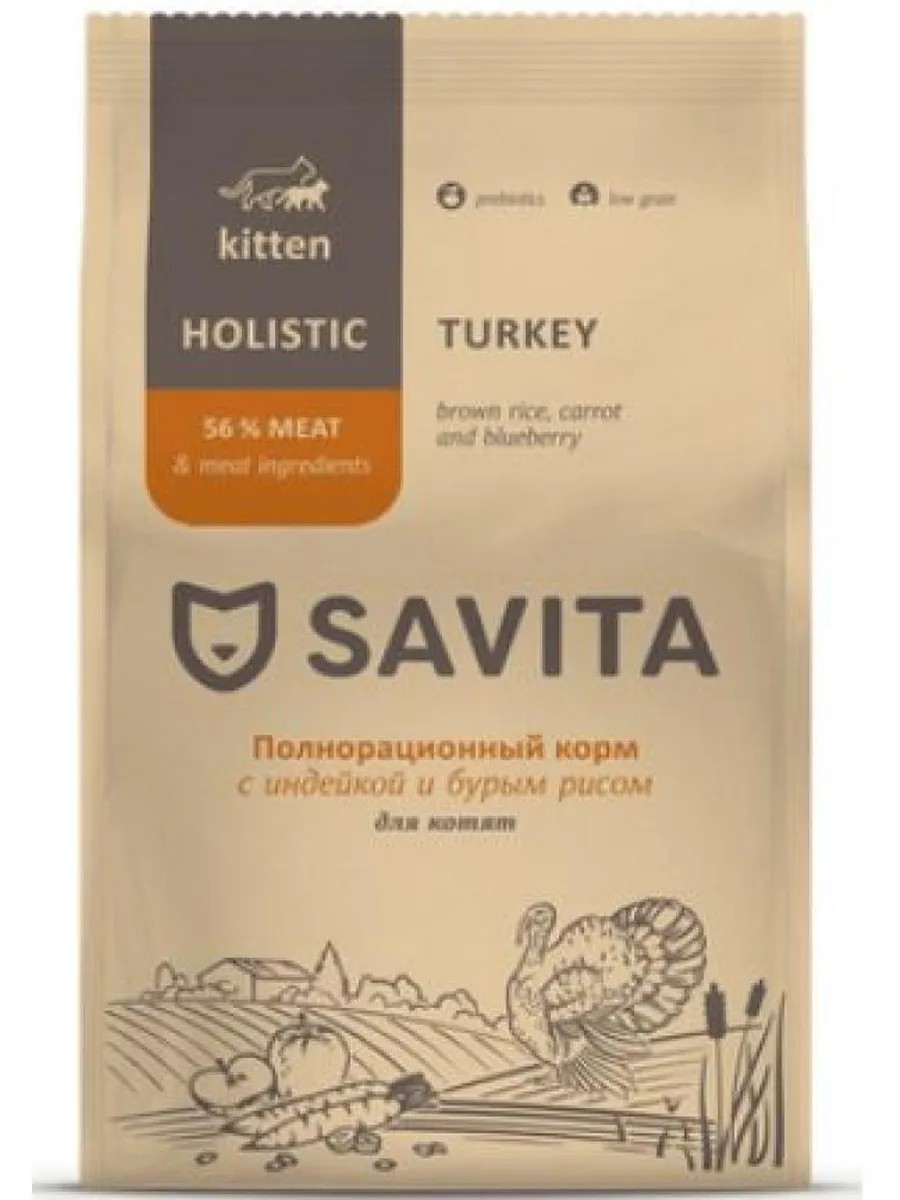 SAVITA Сухой корм для котят с индейкой и бурым рисом, KITTEN 600г