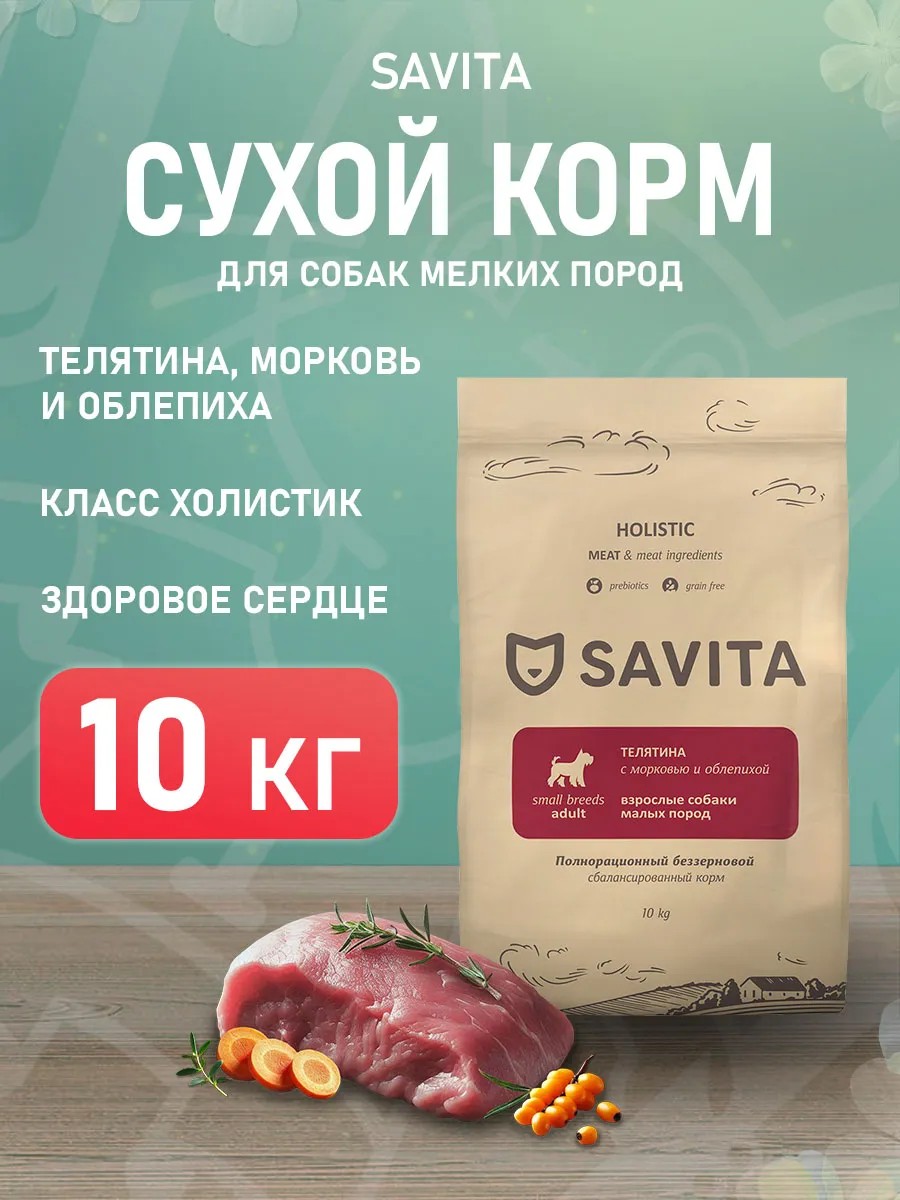 SAVITA Корм сухой для мелких собак беззерновой телятина 10 кг
