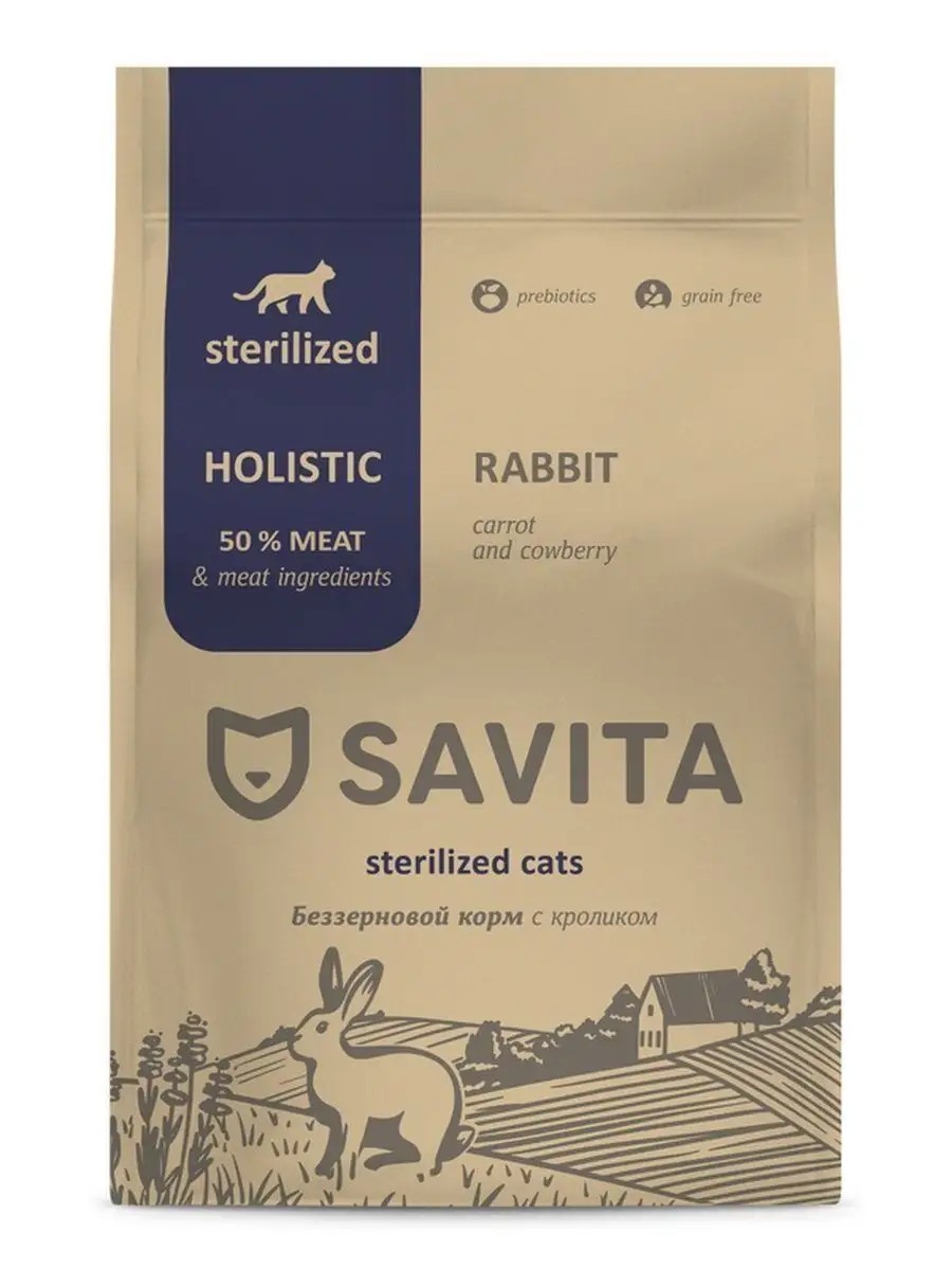 Savita Сухой корм для стерилизованных кошек, кролик 5 кг