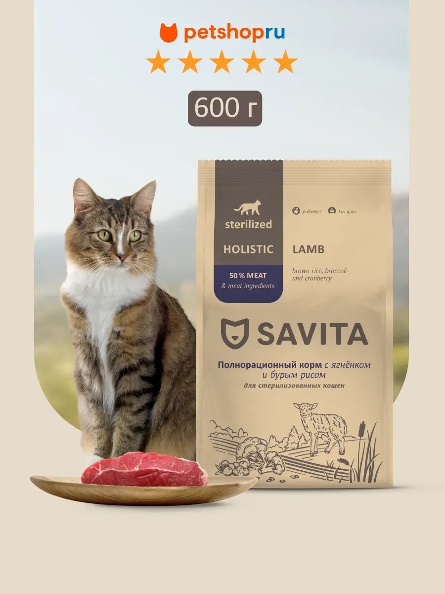 SAVITA Корм для стерил. кошек с ягненком и бурым рисом, 0.6кг