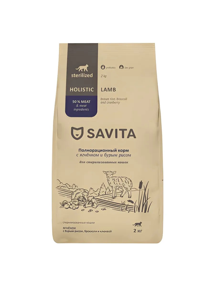 Savita Корм для стерилизованных кошек с ягненком и бурым рисом 2 кг