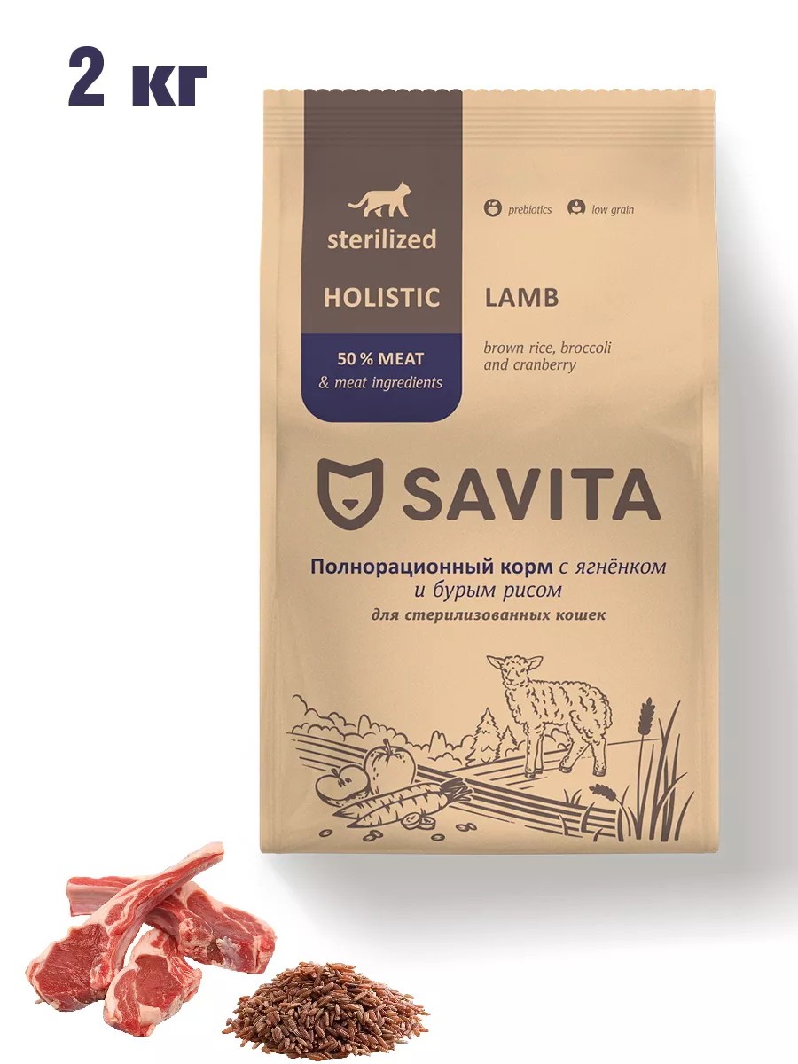 Savita Корм для стерилизованных кошек с ягнёнком и бурым рисом