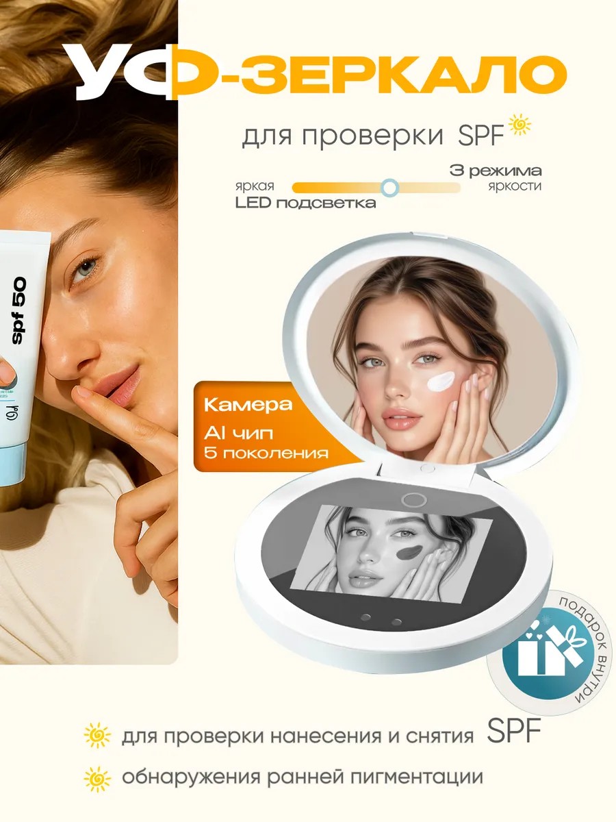 Зеркало с УФ камерой для проверки СПФ крема, инновационное устройство, которое поможет вам определить уровень защиты SPF крема на вашей коже.