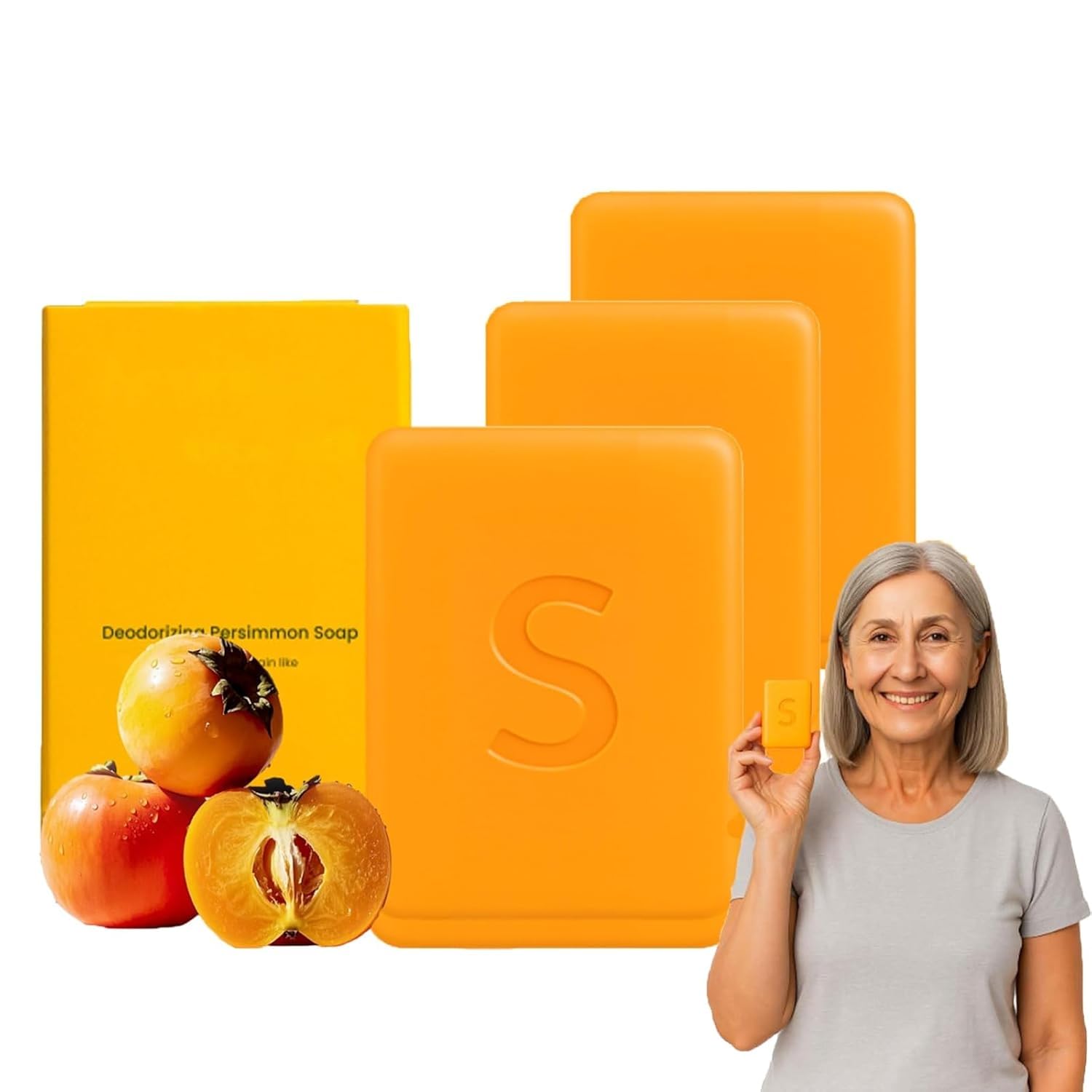 Savon au kaki pour personnes âgées, déodorant et nettoyant pour le bain, hydratant en profondeur pour femmes et hommes 3PC
