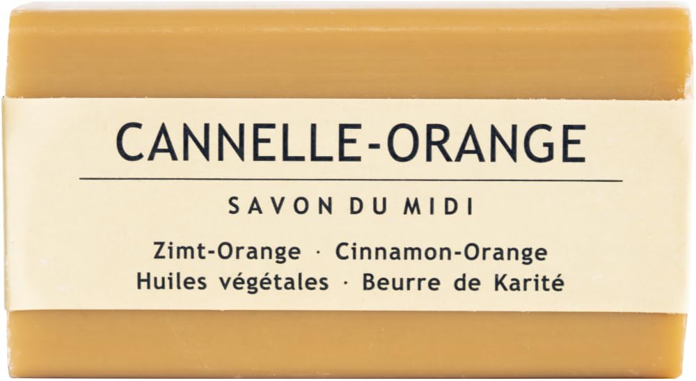 ProDUCTION: Savon du Midi Shea Butter soaps are made in Provence, France. Soap making with vegetable oils has a long tradition around the Mediterranean. Their focus in the South of France is Marseille and Provence. Only vegetable oils from certified organic farming are used in the saponification process. After saponification, shea butter is added, along with honey, fragrance, or essential oil. Our soaps are made according to traditional Provençal soap-making methods. This primarily artisanal production method is reflected in the quality of a gentle and nourishing soap. None of the soaps contain animal fats. Certification: BDIH Cosmos Organic. INGREDIENTS After sodium iodide, sodium palm, aqua, glycerin, citrus aurantium dulcis oil, sodium chloride, cinnamomum zeylanicum oil, parkii butter, citric acid, tetrasodium diacetate, rosmarinus officinalis leaf extract, helianthus cereal seed oil, CI 77492, CI 77491, CI 77499, CI 77891, limonene, eugenol, cinnamal, linalool. Made from natural organic ingredients and essential oils from organic farming - 99.97 natural origin - 79 total organic - 99 organic - Water and mineral free INSTRUCTIONS FOR USE Shea butter soap is a gentle soap for everyday use. It can be used not only on hands but also on the entire body. See moreContents: 6 x 100 g.Savon du midi Savon au beurre de karité orange cannelle 100 g (6 x 100 g)DESCRIPTION DU PRODUIT DESCRIPTION DU PRODUIT Fabrication : les savons de Karité de Savon du Midi sont fabriqués en Provence en France.La fabrication de savon à base d'huiles végétales a une longue tradition autour de la Méditerranée. Leurs priorités du sud de la France sont Marseille et la Provence. Pour la fabrication du savon, seules huiles végétales issues de l'agriculture biologique contrôlée sont utilisées dans le processus de saponification. Après la saponification, le beurre de karité est ajouté au miel, au parfum ou à l'huile essentielle. Nos savons sont fabriqués selon la tradition de fabrication de savon provençale. Ce mode de production principalement artisanal se reflète dans la qualité d'un savon doux et nourrissant. Aucun des savons ne traite des graisses animales. Certification enBDIH Cosmos Organic. INGRÉDIENTS Après inci de sodium, palme de sodium, aqua, glycérine, citrus aurantium dulcis oil, chlorure de sodium, huile de cinnamomum zeylanicum, beurre de parkii, acide citrique, diacetate de tetrasodium, romarinus officinalis leaf extrait, hélianthus Huile de graines de céréales, CI 77492, CI 77491, CI 77499, CI 77891, limonene, eugenol, cinnamal, linalool. Fabriqué à partir d'ingrédients organiques naturels d'huiles essentielles issues de l'agriculture biologique - 99,97 d'origine naturelle - 79 organique total - 99 organique - Sans eau ni minéraux MODE D'EMPLOI Le savon au beurre de karité est un savon doux pour un usage quotidien. Le savon au beurre de karité est un savon doux pour un usage quotidien. Non seulement pour les mains, mais aussi pour tout le corps. Voir plusContenu : 6 x 100 g.