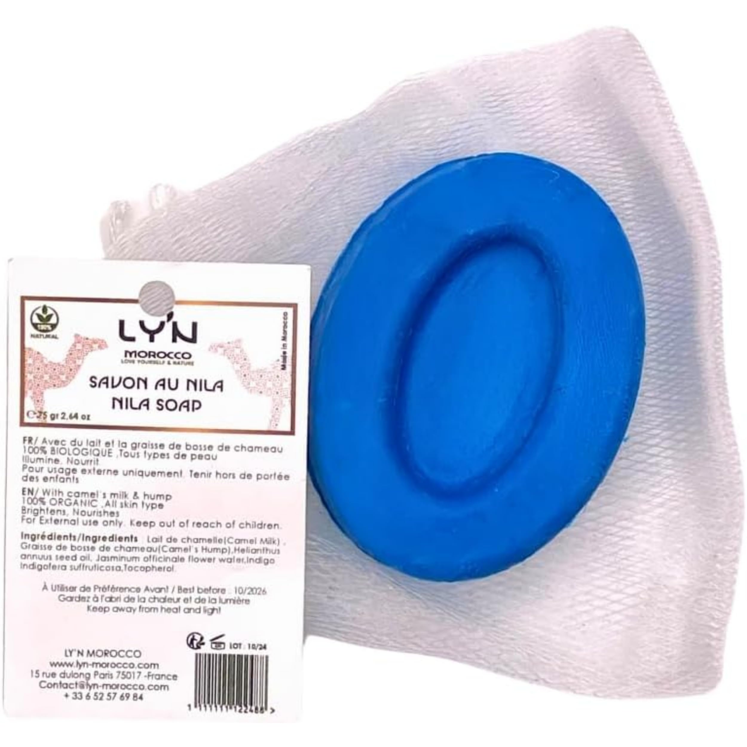 : This soap with Nila powder, camel milk, and camel hump fat is a brightening, moisturizing, and regenerating product, perfect for fading blemishes on the body, knees, face, and underarms. It comes with a convenient mesh bag, allowing for economical and extended use of the soap, while also facilitating transport. Ideal for easy application and a better lather. This exceptional product combines the brightening benefits of Nila powder, an effective natural ingredient renowned for its illuminating effects, with the moisturizing and regenerating properties of camel milk. The result: a luminous and even complexion and soft, radiant, and visibly healthier skin. Camel milk, rich in vitamins and minerals, deeply nourishes the epidermis, while Nila evens out the complexion for an immediate healthy glow. Adopt this exceptional skincare product, rooted in Moroccan tradition, for sublimely beautiful skin every day. Soap dimensions: 8 cm in diameter, 2.5 cm thick. Weight: 80 g. Ingredients: Original Blue Nila Powder, Camel Milk, Camel Hump Fat. Safety Warning: Avoid contact with eyes. Ingredients: Original Blue Nila Powder, Camel Milk, Camel Hump Fat. P.when('A').execute(function(A) { A.on('a:expander:toggle_description:toggle:collapse', function(data) { window.scroll(0, data.expander. expander[0].offsetTop-100) }) }) Safety Warning: Avoid contact with eyes. See moreHealthy and radiant skin: Our unique and natural combination of Original Nila powder, camel hump fat, and camel milk gives you soft, radiant, and visibly healthier skin. CAMEL HUMP FAT (tallow) is a rich source of valuable nutrients. Because the structure of camel fat is similar to that of human skin, it is absorbed quickly and effectively, contributing to optimal recovery. It penetrates deeply to intensely moisturize and nourish the skin. CAMEL MILK is rich in essential unsaturated fatty acids, sterols, lanolin, and vitamins A, E, and C. Vitamin C is 3 to 7 times more abundant than in cow's milk. INTENSIVE HYDRATION: It intensely moisturizes the skin and gives it a more youthful appearance thanks to ingredients sourced from camels fed exclusively on Moroccan desert grasses. ? HANDCRAFTED: Cold-processed soap, made over 40 days, with fresh, organic camel milk and camel hump fat (tallow) from the Moroccan desert. NATURAL SKIN LIGHTENING: This soap contains ORIGINAL Nila Blue, a natural ingredient known for its lightening properties that even out and brighten the complexion. Also enriched with camel milk and camel hump fat, this soap is ideal for fading blemishes on the body, face, knees, and underarms.Description du produit Ce savon à la poudre de Nila au lait de chamelle et graisse de bosse de chameau est un produit éclaircissant, hydratant et régénérant, parfait pour estomper les taches sur le corps, les genoux, le visage et les aisselles . Il est livré avec son filet pratique, le filet permet une utilisation économique et prolongée du savon, tout en facilitant le transport. idéal pour une application facile et une meilleure mousse. Ce produit exceptionnel combine les vertus éclaircissantes de la poudre de Nila, un ingrédient naturel efficace réputé pour ses effets illuminant, et les propriétés hydratantes et régénérantes du lait de chamelle. Résultat :un teint lumineux et uniforme et une peau douce, éclatante et visiblement plus saine. Le lait de chamelle, riche en vitamines et minéraux, nourrit en profondeur l'épiderme tandis que la Nila unifie le teint pour un effet bonne mine immédiat. Adoptez ce soin d'exception issu de la tradition marocaine pour une peau sublimée au quotidien. Dimensions du savon : 8 cm de diamètre, 2,5 cm d'épaisseur. Poids : 80 g.Ingrédients:Poudre de Nila bleue originale, Lait De Chamelle, Graisse de Bosse de Chameau.Avertissement de Sûreté: éviter tout contact avec les yeux. Ingrédients Poudre de Nila bleue originale, Lait De Chamelle, Graisse de Bosse de Chameau P.when('A').execute(function(A) { A.on('a:expander:toggle_description:toggle:collapse', function(data) { window.scroll(0, data.expander. expander[0].offsetTop-100) }) }) Avertissement De Sûreté éviter tout contact avec les yeux Voir plusPeau saine et éclatante : Notre combinaison unique et naturel de la poudre de Nila Originale et de la graisse de bosse de chameau et de lait de chamelle vous offre une peau douce, éclatante et visiblement plus saine. GRAISSE DE BOSSE DE CHAMEAU ( suif) qui est une source riche en nutriments précieux Comme la structure de la graisse de chameau ressemble à celle de la peau humaine, elle est absorbée rapidement et efficacement, ce qui contribue à une récupération optimale, il pénètre en profondeur pour hydrater intensément et nourrir la peau. LAIT de CHAMELLE riche en acides gras essentiels insaturés, stérol et lanoline et en vitamine vitamine A, la vitamine E et la vitamine C. Ce dernier est 3 à 7 fois plus présente que dans le lait de vache. HYDRATATION INTENSE: Elle hydrate intensément la peau et lui donne un aspect plus jeune grâce aux ingrédients issus des chameaux nourris exclusivement des herbes de désert marocain:. ? FABRICATION ARTISANALE : Savon saponifiés à froid, pendant 40 jours ,au lait de chamelle frais et bio à base de la graisse de bosse de chameau (SUIF) de desert marocain. ÉCLAIRCISSANT NATUREL : Ce savon contient de la Nila bleu ORIGINALE, un ingrédient naturel reconnu pour ses propriétés éclaircissantes qui unifient et illuminent le teint. Egalement enrichi au lait de chamelle et à la graisse de bosse de chameau, ce savon est idéal pour estomper les taches sur le corps, le visage, les genoux et les aisselles.Savon Nila au Lait de Chamelle et Graisse de bosse de Chameau (suif), Éclaircissant, Hydratant Régénérant- Naturel -estompe les taches sur corps, genoux, visage, et aisselles -tous type de peaux