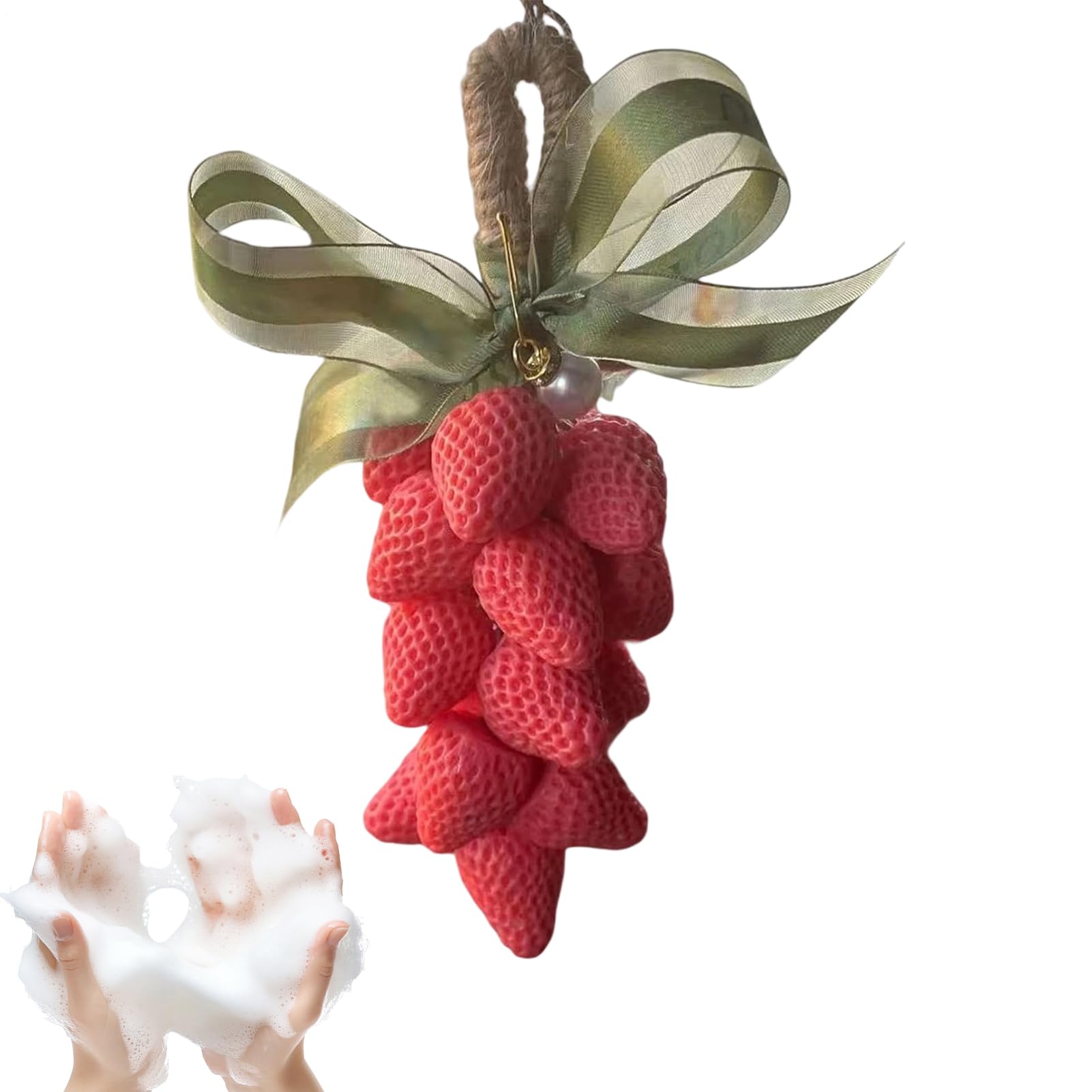 Savon Visage en Forme de Fraise,Savon Nettoyant Avec Corde - Éclaircissant Hydratant Esthétique pour le Bain Soin Décoratif Corps