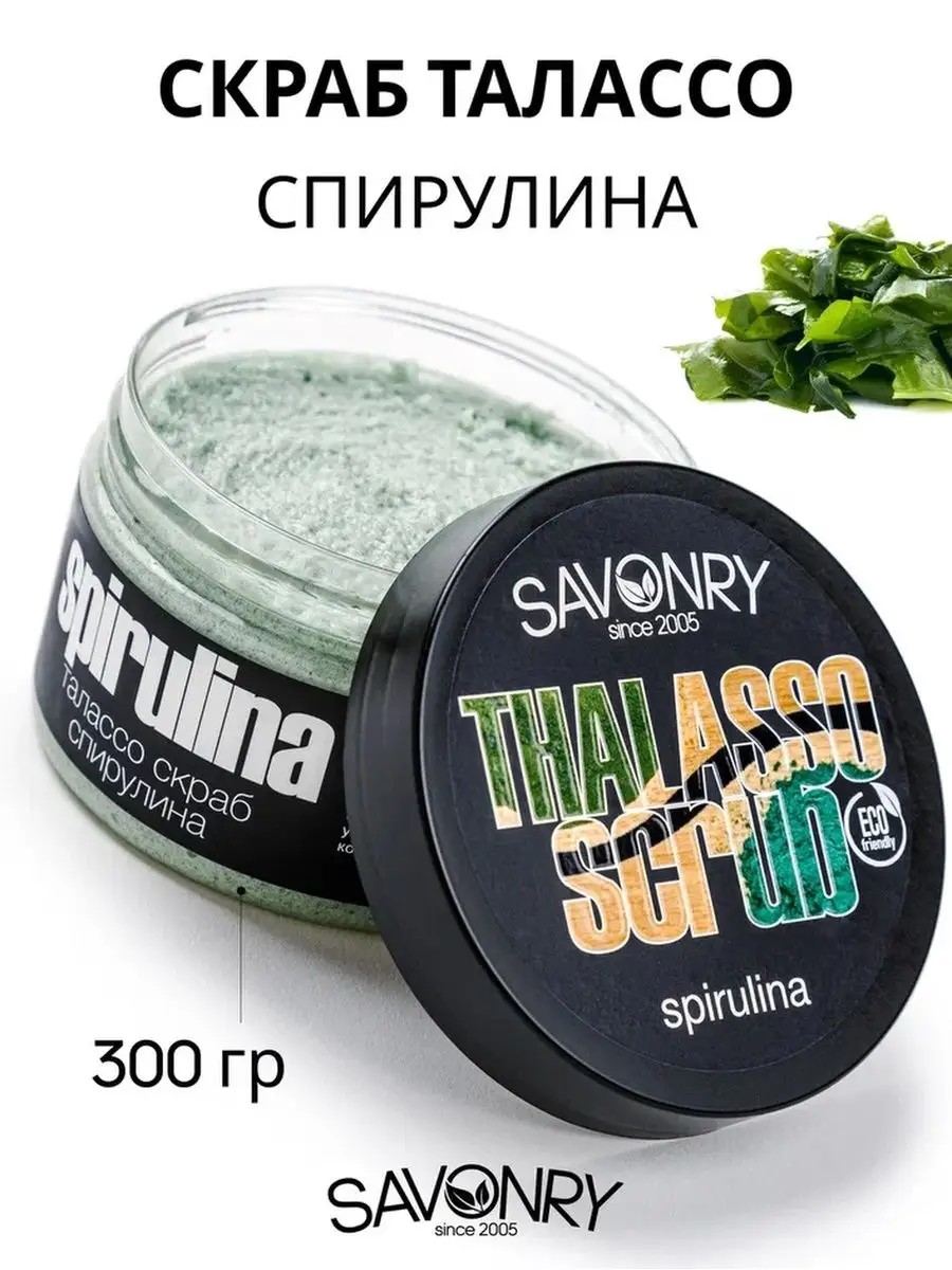 Savonry Thalasso Body Scrub with Epsom Salt, Minerals, Laminaria, and Spirulina Extracts is a unique product created with coconut oil and a blend of sea salts for intensive healing and skin renewal. Epsom salt stimulates blood circulation, improves metabolism, helps eliminate puffiness, and intensively draws toxins from the skin, cleansing the tissue and helping restore youth, smoothness, and a healthy appearance. Coconut oil nourishes and improves elasticity, preventing stretch marks. With regular use, your skin will become softer and more velvety, and your body will be firm and toned. Suitable for regular use, spa treatments, baths, saunas, after sports, and for stretch marks and cellulite. PLEASE NOTE: Natural ingredients can change color, texture, and exfoliate. Thalasso scrubs may change color, but this does not affect the quality of the product.