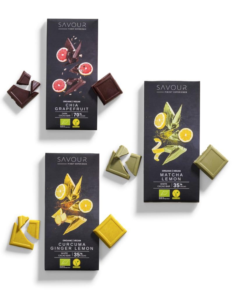 SAVOUR Chocolat 3 variétés exceptionnelles à déguster Bio, végétalien, sans gluten
