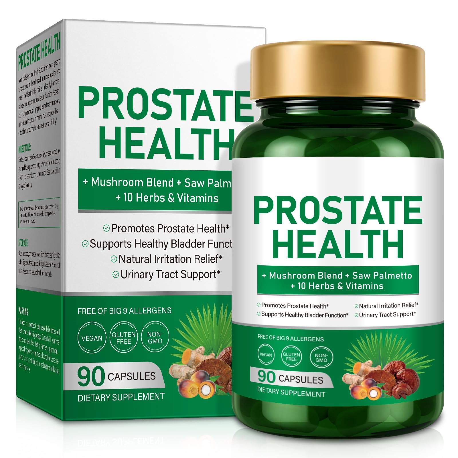 Our advanced 2000mg SNAP formula combines some of the most trusted ingredients for men's wellness, including high-strength Saw Palmetto (45 fatty acids), plant sterols, and a 900mg Reishi Maitake mushroom complex. These botanicals have been traditionally used to support normal prostate function, healthy urinary flow, and overall comfort. Stinging Nettle Root and complementary herbs further help maintain bladder health—an essential factor for men seeking improved balance during both daytime and nighttime. Formulated without GMOs, gluten, dairy, soy, or artificial additives, this clean daily-use formula is ideal for men looking for natural and proactive wellness support. Enhanced with Zinc, Selenium, Magnesium, Vitamin C, and Lycopene, it offers broad-spectrum nutritional support for antioxidant defense, hormone balance, reproductive health, and long-term vitality. Specification: Product Name: Men's Prostate Support Capsules Product Size: 2.2 x 2.2 x 3.93 in 5.6 x 5.6 x 10 cm Net Weight: 3.52 oz 100 g Formula Composition: 2000mg SNAP Prostate Blend 900mg Mushroom Extract Blend Package Includes: 1 × Men's Prostate Support Capsules (90ct)Essential Nutrients for Men's Overall Wellness Fortified with Zinc, Selenium, Magnesium, Vitamin C, and Lycopene—key nutrients that support hormone balance, antioxidant defense, reproductive health, vitality, and overall daily energy. Pure, Clean Transparent Ingredients Vegan-friendly, non-GMO, gluten-free, and free from the top 9 allergens. No artificial fillers or unnecessary additives—only targeted nutrients your body can use. Complete Urinary Tract Bladder Support More than a prostate supplement—this formula includes Stinging Nettle Root and complementary botanicals that help support healthy urinary flow, bladder comfort, and nighttime bathroom regularity. Dual Mushroom Complex for Cellular Immune Support Powered by 900mg Reishi Maitake extract, two traditional botanicals known for their strong antioxidant activity. This unique blend helps the body combat oxidative stress and maintain long-term prostate and immune health. 2000mg Advanced Prostate Support Formula for Men Our clinically inspired SNAP blend delivers a powerful 2000mg men's wellness formula featuring 45 fatty-acid Saw Palmetto and plant sterols that help support normal prostate size, urinary flow, and overall comfort—day and night.