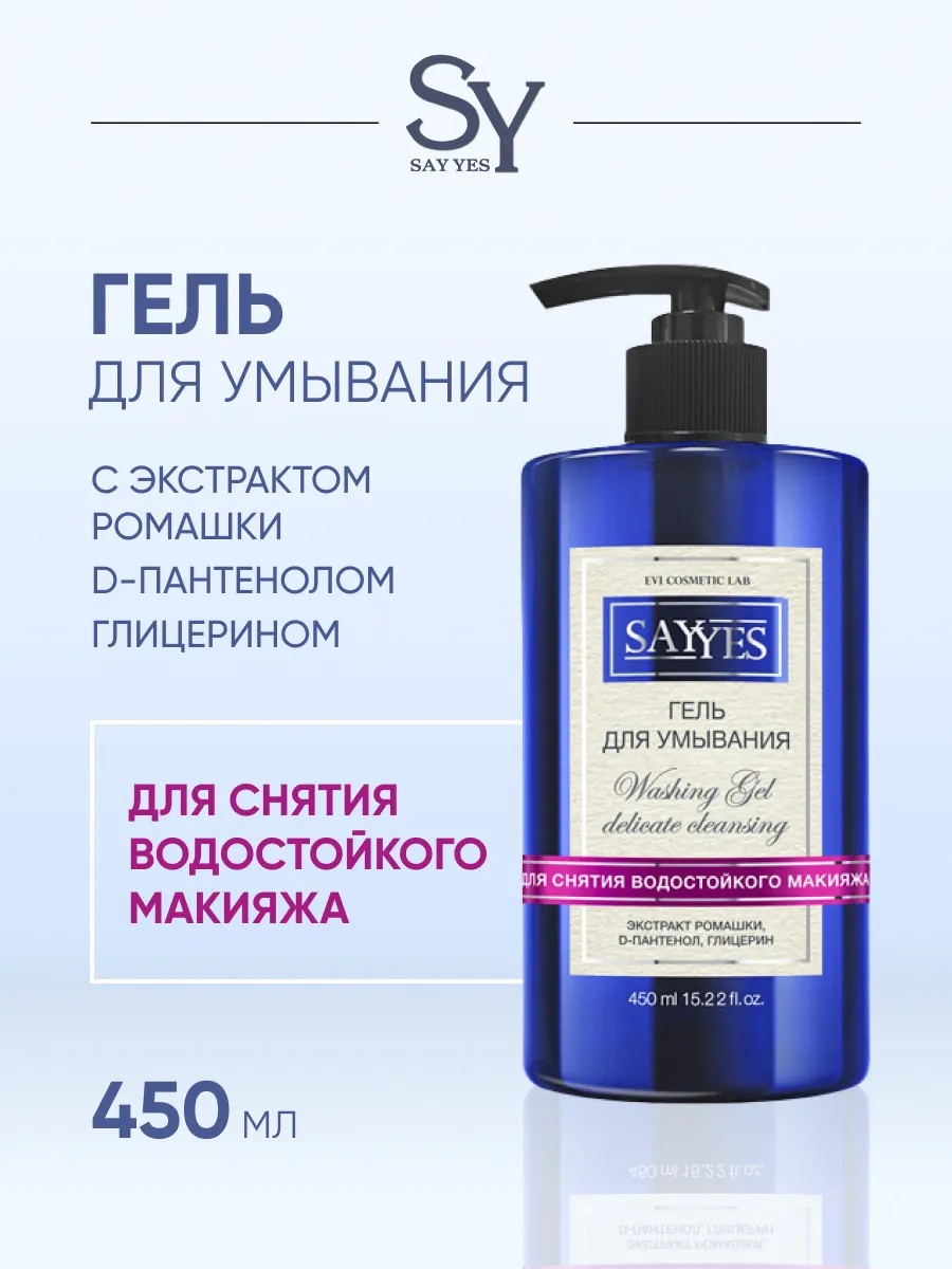Гель для умывания SAY YES объемом 450 мл — это идеальное решение для ежедневного ухода за лицом. Этот мягкий гель бережно очищает кожу, удаляя макияж, в том числе водостойкий, и загрязнения, не пересушивая ее. Формула геля обогащена экстрактом ромашки, который известен своими успокаивающими и смягчающими свойствами, что делает его подходящим даже для чувствительной кожи.