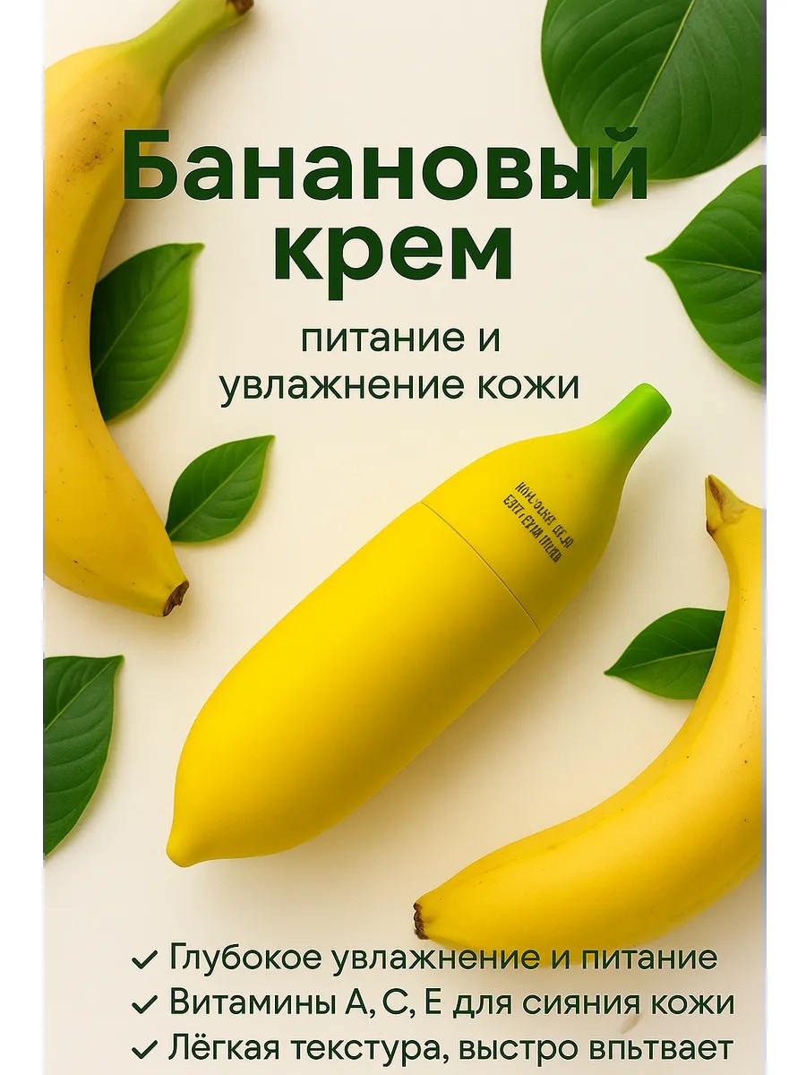 Крем для рук в банановом тюбике — оригинальный косметический продукт, который сочетает в себе яркий дизайн и эффективный уход за кожей. Благодаря натуральным увлажняющим компонентам крем глубоко питает и смягчает кожу, устраняет сухость и шелушение, придаёт рукам нежность и здоровый вид.