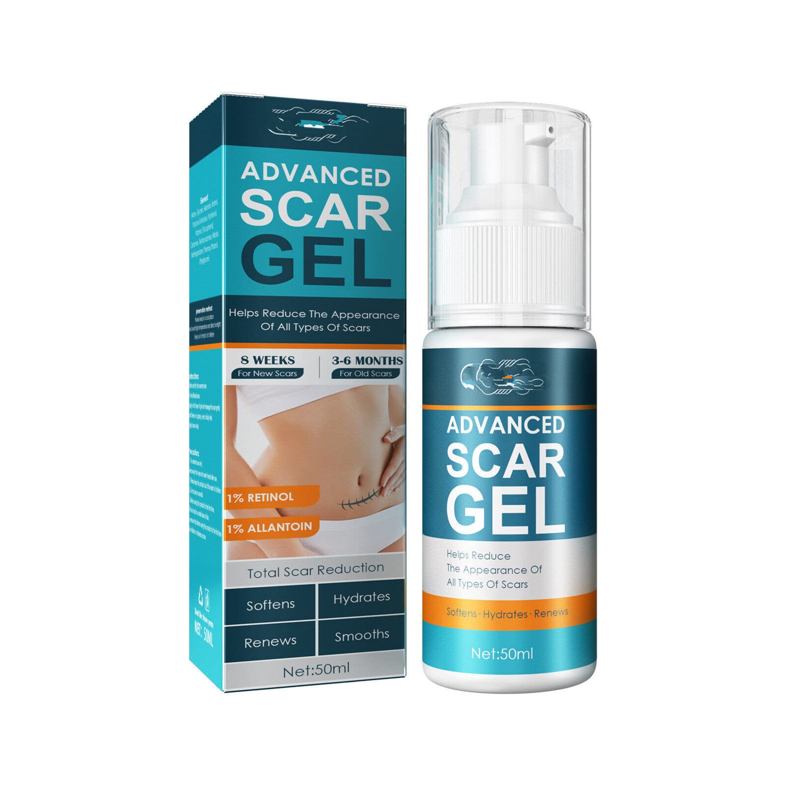net weight:50ml. Very suitable for lightening the surgical defects, cutting marks, stretch marks, acne marks, skin injuries, burns and redness. *3. It can effectively smooth scar tissue, remove acne marks, smooth rough skin, promote natural regeneration and healing of skin, and shorten the use time. *2. Promote the natural regeneration and healing of skin, and moisturize skin. *1. Made with natural plant extracts, safe and mild, no irritation, easy to remove scars.