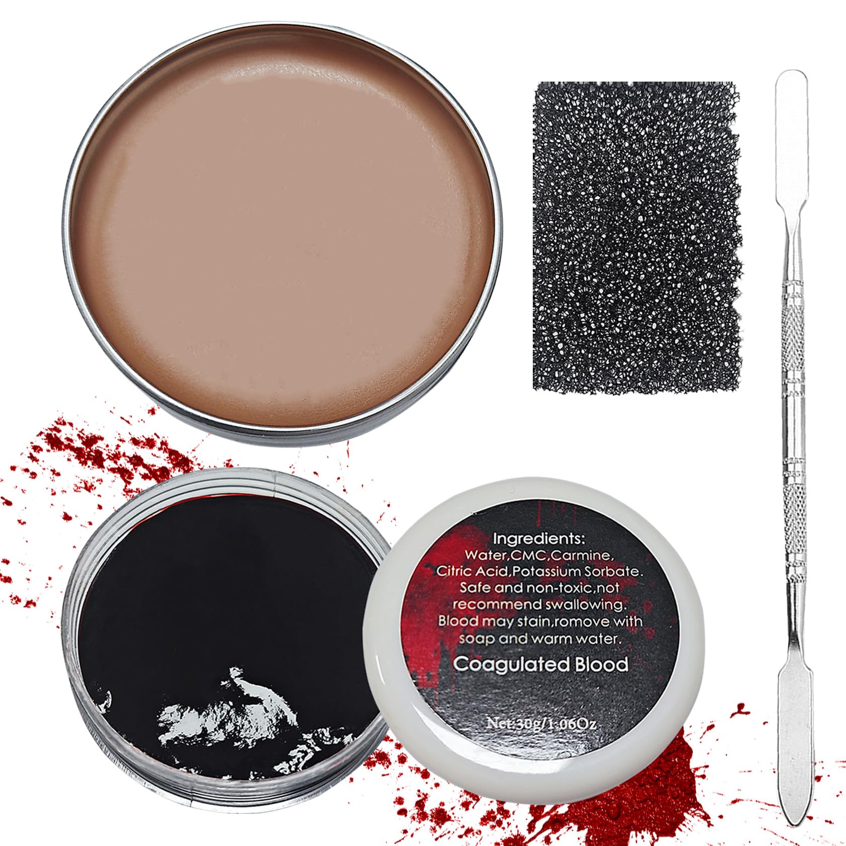 Scar Wax SFX Makeup Kit Coagulated Blood Gel with Spatula Tool and Sponge Halloween Special Effects Zombie Makeup Kit Face Painting Kit Halloween Makeup for Halloween Stage Cosplay Festival