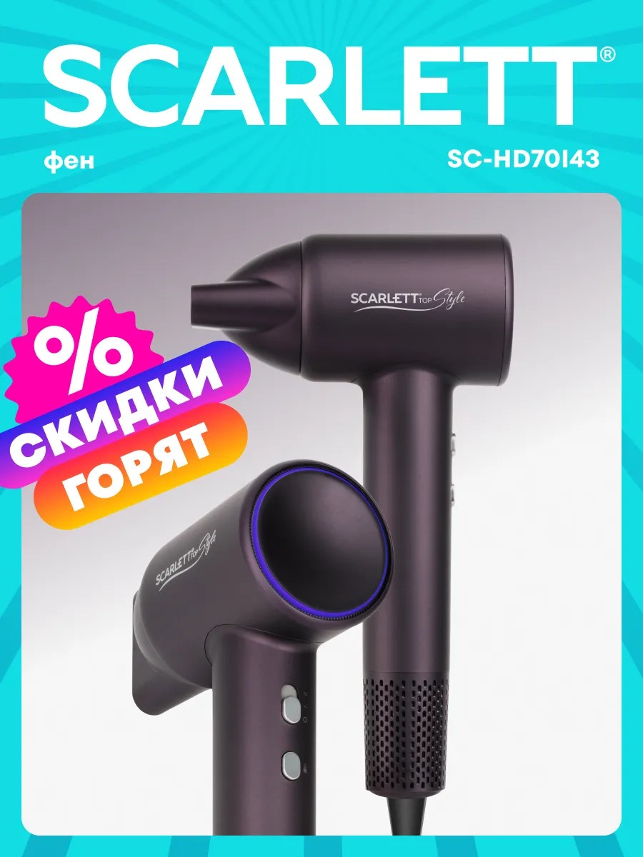 Фен для волос SC-HD70I43 оснащен технологичным и мощным BLDC мотором со скоростью воздушного потока 110000 об/мин. Он позволяет за считанные минуты бережно и равномерно высушить ваши волосы.