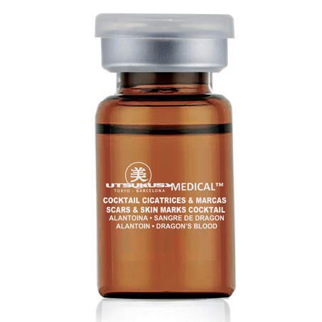 Scars cocktail is a sterile serum for the intensive treatment of spots and scars.It acts as a cell proliferator and epithelization stimulant, which means that it helps to regenerate the tissue by accelerating the growth of ""healthy tissue"".Main active ingredients: Alantoin is characterized by the fact that it accelerates the process of replacing dead or the skin cells aged and replaced by new cells.It promotes and accelerates the natural healing processes.In addition, it was observed that Allantoin stimulates the formation of keratin, collagen and elastin, which makes our skin smoother and more elastic and gives a healthier and rejuvenated appearance.Dragon's Blood is an extract from the dragon blood tree with a variety of positive properties.It promotes the formation of collagen, improves u. Accelerates the healing process u.Application: It is recommended to thoroughly clean the skin with the basic line cleaning milk u. With the bijin cleaning cream from Utsukusy Cosmetics.The serum should only be applied to smaller skin areas so that it does not dry up before it is incorporated into the skin with a dermapen or dermar roller.After incorporating the serum, the excess serum on the skin and the sterile regeneration mask from Utsukusy Cosmetics put on the skin.Remove the regeneration mask after 6 - 8 minutes and remove the remaining remnants with a cotton pad.Finally, apply Dragon Blood Creme u. Then apply the sunscreen with LSF 50 from Utsukusy Cosmetics.Suitable for use on the face and the body.Recommended for all skin types, dermatologically tested, free of parabens and. Warnings Only for commercial use!For external use only!Not injectable!The serum is not suitable for injection.The serum is not suitable for nebulizers, injection syringes and so -called hyaluron pens.Utsukusy Cosmetics is a Spanish cosmetics company founded in 1979.Utsukusy supplies selected cosmetic studios and beauty institutes with professional cosmetic products.The product is manufactured in Spain.Since the serum has a gel -like texture, it is not suitable for nebulizers and injection injections.The serum is not suitable for injection.After removing the ampoule, the sterile serum should only be applied to smaller skin areas so that it does not dry before it is incorporated into the skin with a dermap or dermar roller.The serum is suitable for use on the face and on the body.The main active ingredients of the scars cocktail, which is only intended for professional users and commercial use, are Allantoin and Dragon Blood.The scars cocktail is for the intensive treatment of scars and the associated skin discoloration.It looks like a cell proliferator, which means that it helps to regenerate the tissue by accelerating the growth of ""healthy tissue"".Narben Cocktail ist ein steriles Serum für die intensive Behandlung von Flecken u. Narben. Es wirkt als Zellproliferator und Epithelisierungs-Stimulans, das heißt, es hilft, das Gewebe zu regenerieren, indem es das Wachstum von ""gesundem Gewebe"" beschleunigt. HAUPTWIRKSTOFFE: ALANTOIN zeichnet sich dadurch aus, dass es den Prozess der Ablösung von toten o. gealterten Hautzellen beschleunigt u. sie durch neue Zellen ersetzt. Es fördert und beschleunigt die natürlichen Heilungsprozesse. Darüber hinaus wurde beobachtet, dass Allantoin die Bildung von Keratin, Kollagen und Elastin stimuliert, wodurch unsere Haut glatter u. elastischer wird und ein gesünderes und verjüngtes Aussehen erhält. DRAGON'S BLOOD ist ein Extrakt aus dem Drachenblut-Baum mit vielfältigen positiven Eigenschaften. Es fördert die Bildung von Kollagen, verbessert u. beschleunigt den Heilungsprozess u. wirkt stark gegen freie Radikale. ANWENDUNG: Es wird empfohlen vor der Anwendung die Haut mit der Basic Line Reinigungsmilch u. mit der Bijin Reinigungscreme von Utsukusy Cosmetics gründlich zu reinigen. Das Serum sollte nur auf kleinere Hautpartien auftragen werden, damit es nicht eintrocknet, bevor es mit einem Dermapen o. Dermaroller in die Haut eingearbeitet wird. Nach dem Einarbeiten des Serums das überschüssige Serum auf der Haut lassen u. die sterile Regenerationsmaske von Utsukusy Cosmetics auf die Haut auflegen. Die Regenerationsmaske nach 6 – 8 Minuten abnehmen u. die verbliebenen Reste mit einem Wattepad entfernen. Zum Abschluss Dragon Blood Creme u. dann die Sonnencreme mit LSF 50 von Utsukusy Cosmetics auftragen. Sowohl für die Anwendung im Gesicht als auch am Körper geeignet. Für alle Hauttypen empfohlen, dermatologisch getestet, frei von Parabenen u. enthält weder gentechnisch manipulierte noch Inhaltsstoffe tierischen Ursprungs WARNHINWEISE Nur für den gewerblichen Gebrauch! Nur zur äußeren Anwendung! Nicht injizierbar! Das Serum ist nicht zur Unterspritzung geeignet. Das Serum ist nicht für Vernebler, Injektionsspritzen und sog. Hyaluron Pens geeignet.Utsukusy Cosmetics ist ein bereits 1979 gegründetes spanisches Kosmetikunternehmen. Utsukusy beliefert ausgewählte Kosmetikstudios u. Schönheitsinstitute mit professionellen Kosmetikprodukten. Das Produkt wird in Spanien hergestellt. Da das Serum eine gelartige Textur besitzt, ist es nicht für Vernebler u. Injektionsspritzen geeignet. Das Serum ist nicht zur Unterspritzung geeignet. Das sterile Serum sollte nach der Entnahme aus der Ampulle immer nur auf kleinere Hautpartien auftragen werden, damit es nicht eintrocknet, bevor es mit einem Dermapen oder Dermaroller in die Haut eingearbeitet wird. Das Serum ist für die Anwendung im Gesicht u. am Körper geeignet. Die Hauptwirkstoffe des Narben Cocktail, der nur für professionelle Anwender und den gewerblichen Gebrauch bestimmt ist, sind Allantoin und Dragon Blood. Der Narben Cocktail ist für die intensive Behandlung von Narben u. den damit einhergehenden Hautverfärbungen. Es wirkt wie ein Zellproliferator, das heißt, es hilft, das Gewebe zu regenerieren, indem es das Wachstum von ""gesundem Gewebe"" beschleunigt.Narben Cocktail – steriles Serum für Microneedlin